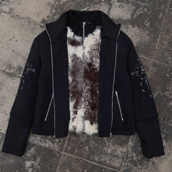 フェイクファー切替ダブルジップニットブルゾン(ruf_02775)