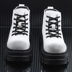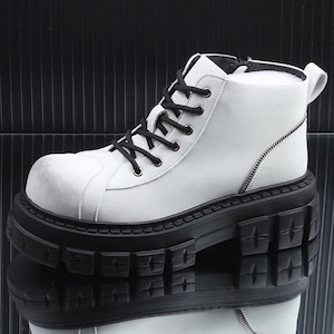 メタルジップエッジレースアップホワイトタンクブーツ(ruf_02784)