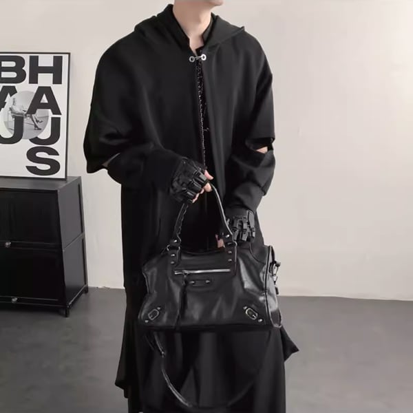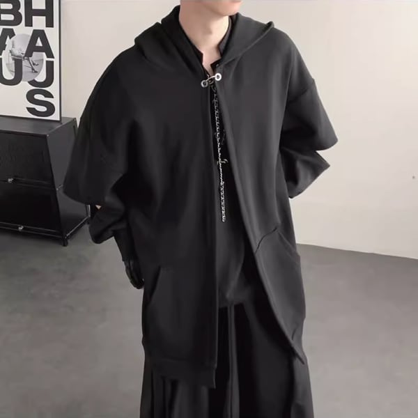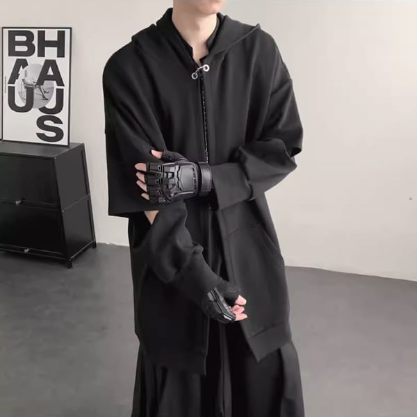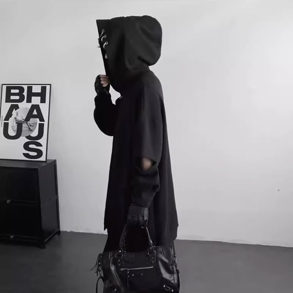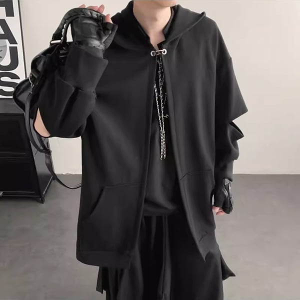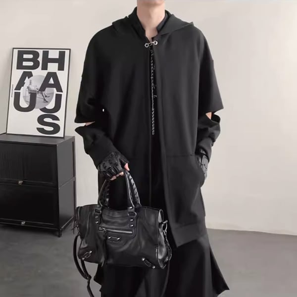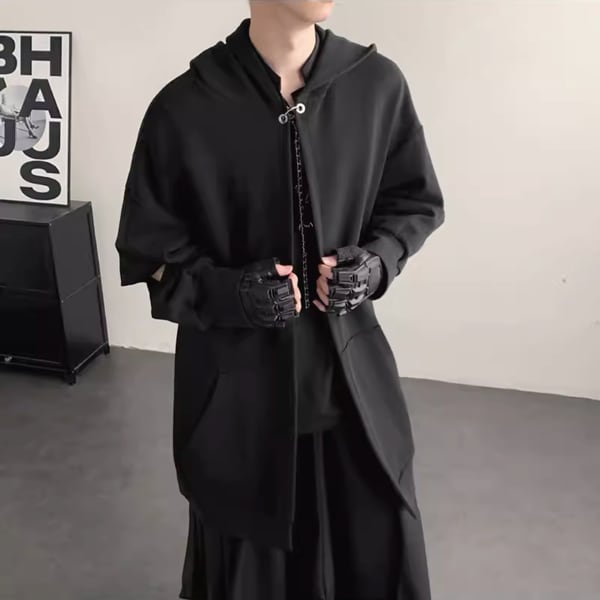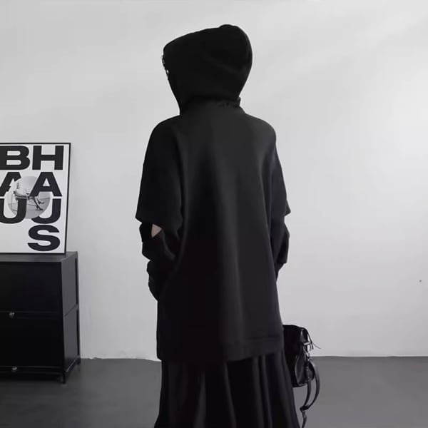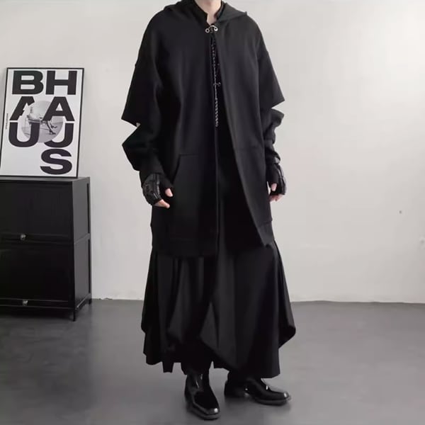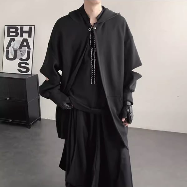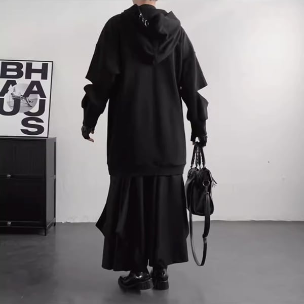 メタルリングフード スリットスリーブ ロングケープパーカー(ruf_02788)