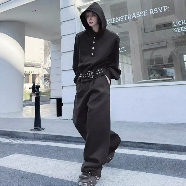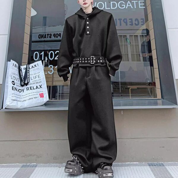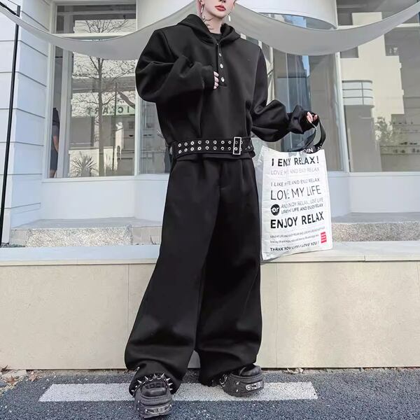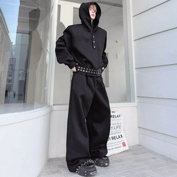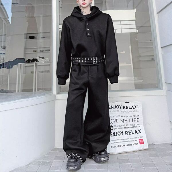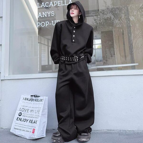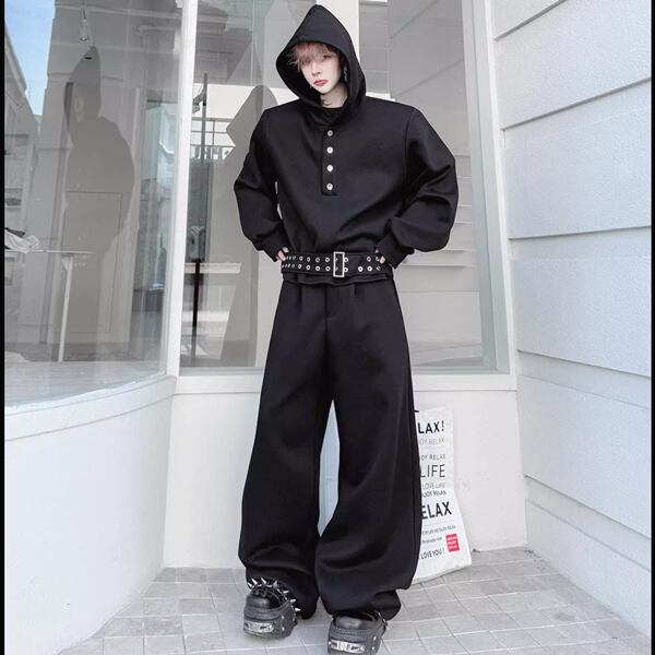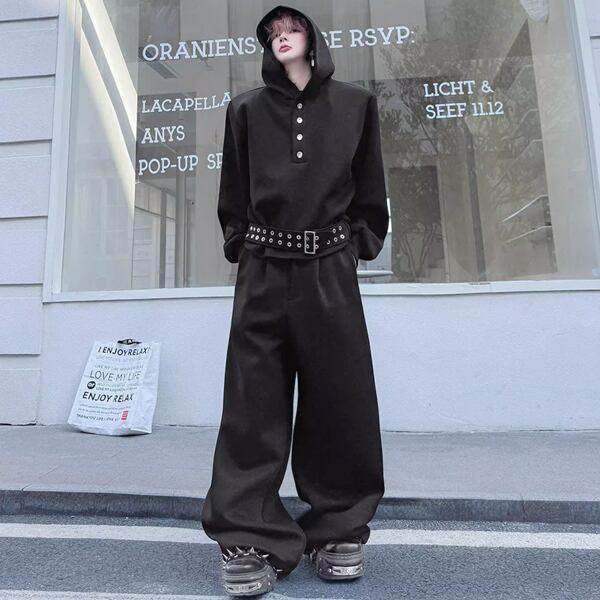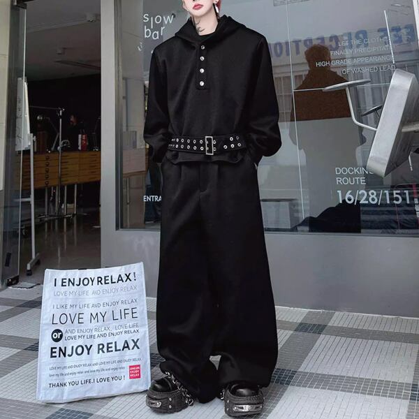 ダークストリート ベルトフーディブラックセットアップ(ruf_02809)