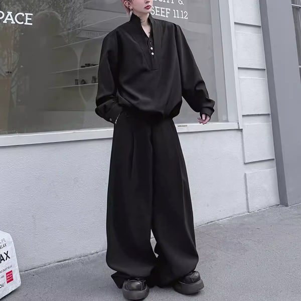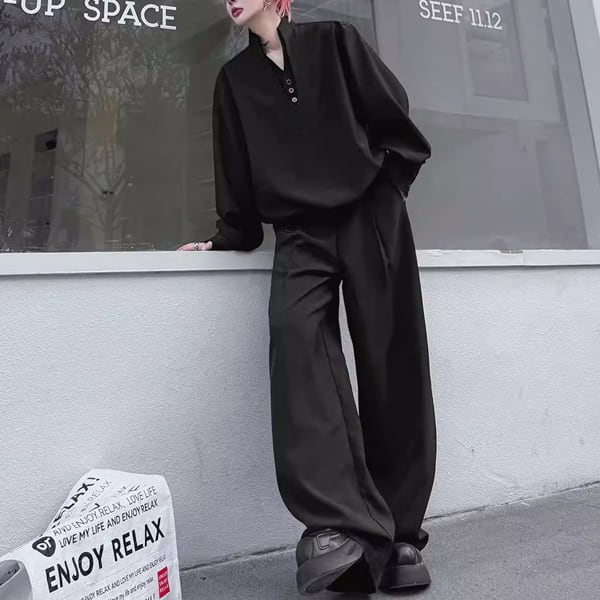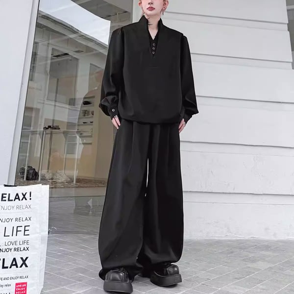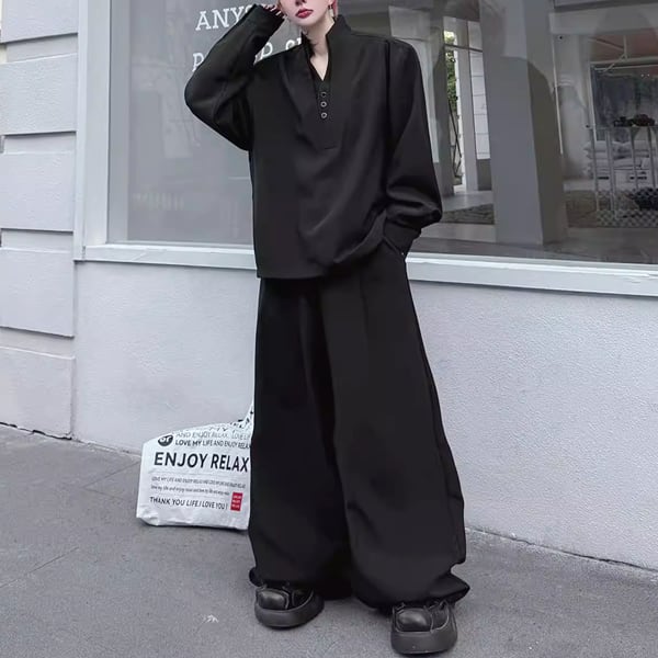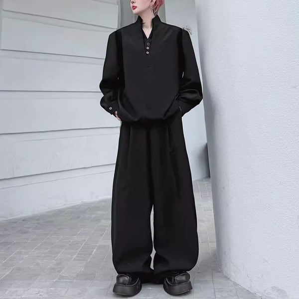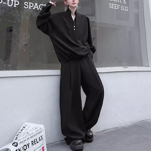 ダークエレガンスVネックセットアップワイドパンツ(ruf_02814)