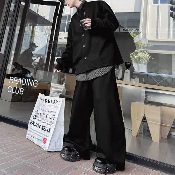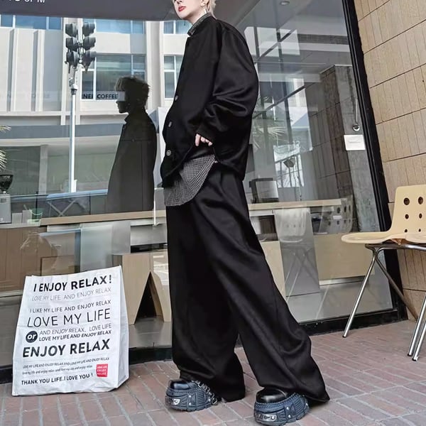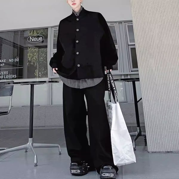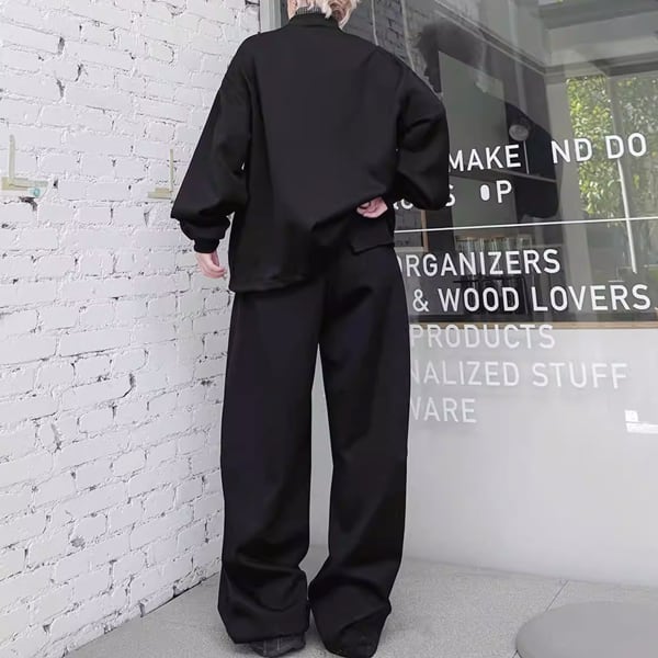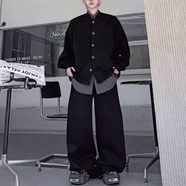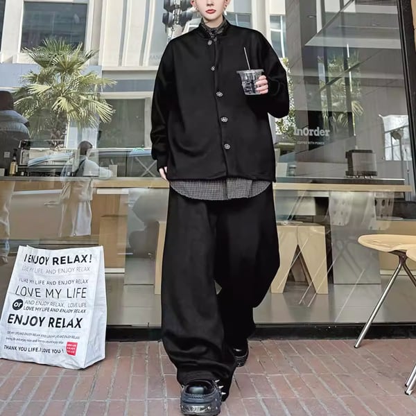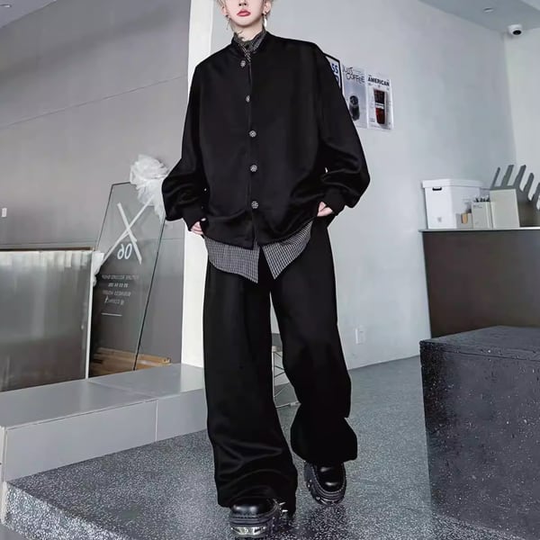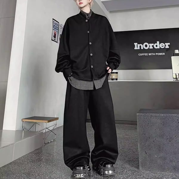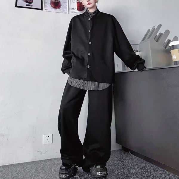 チェックレイヤード風オーバーサイズブラックセットアップ(ruf_02816)