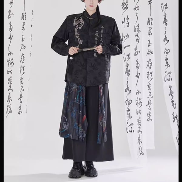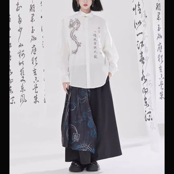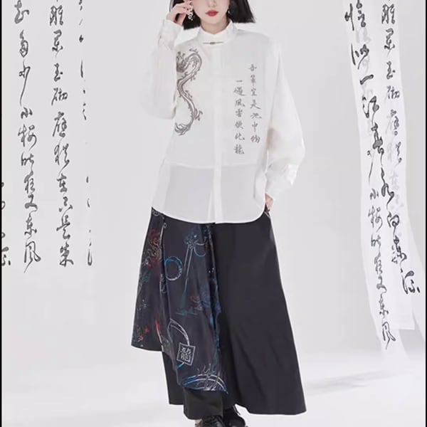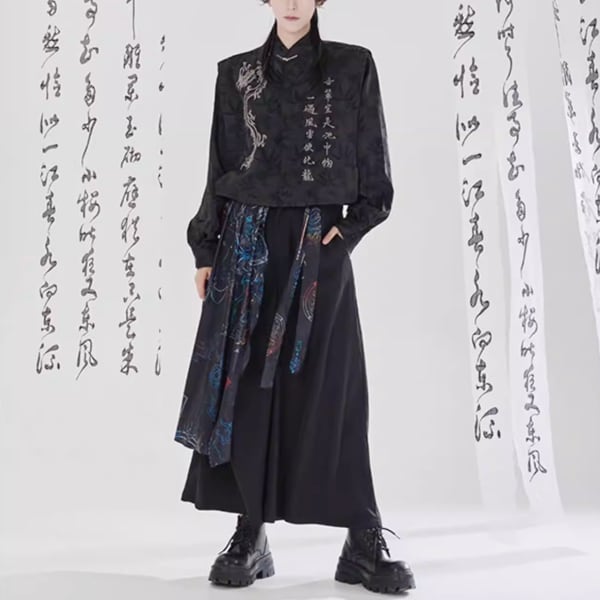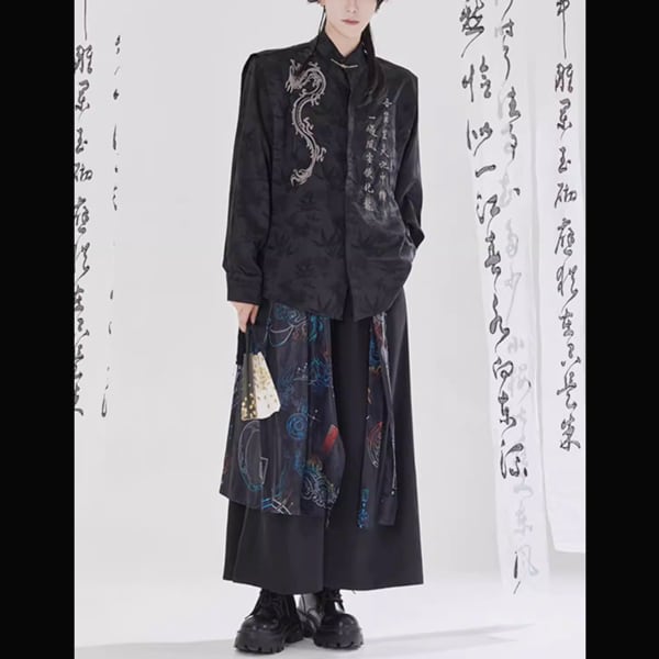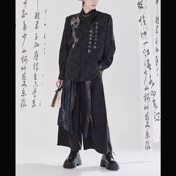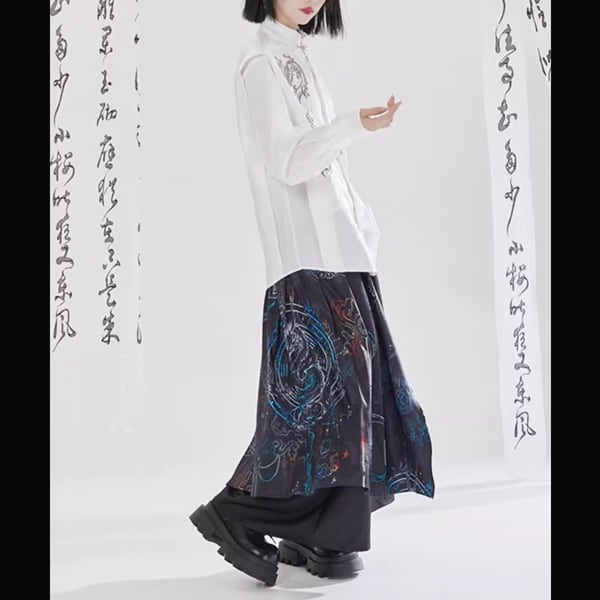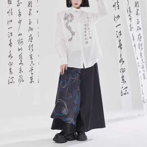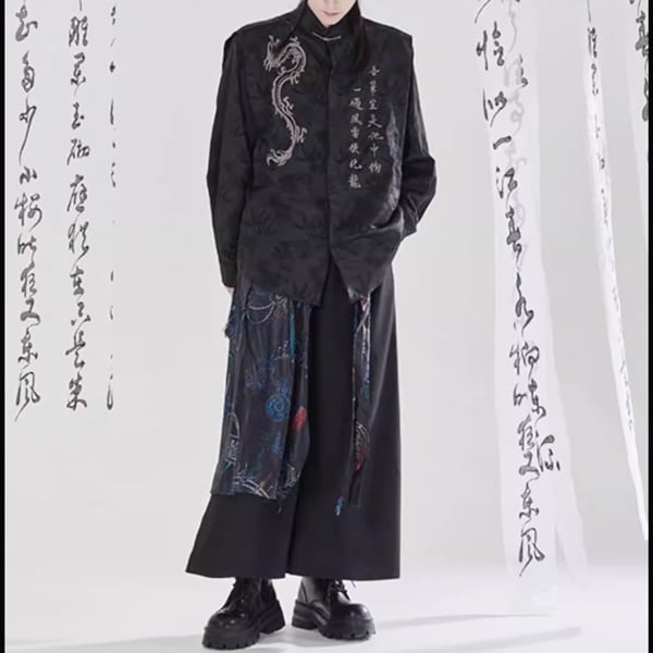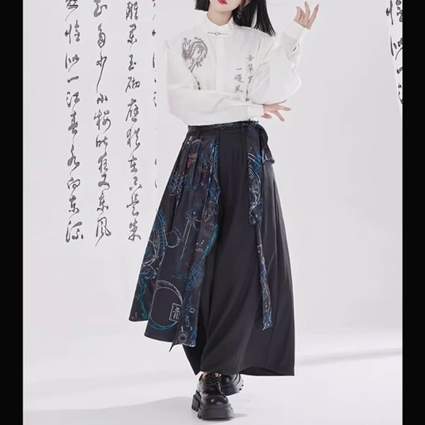ドラゴンモチーフアシメレイヤードワイドパンツ(ruf_02824)