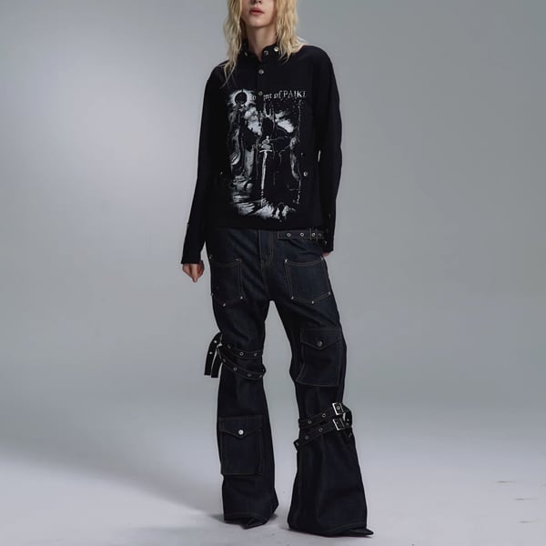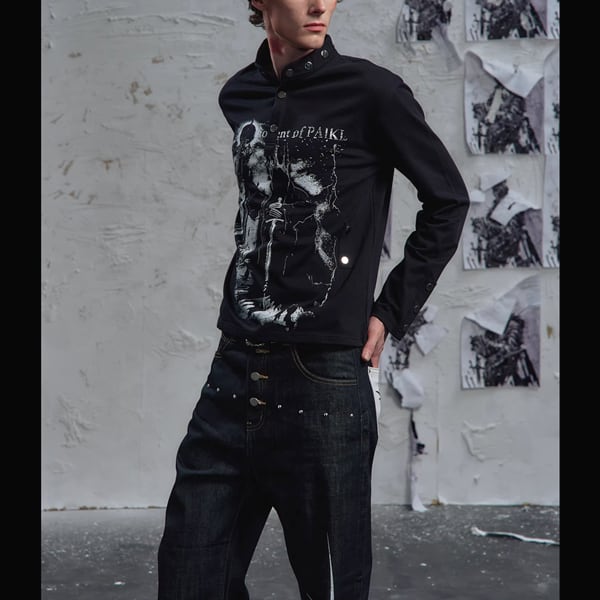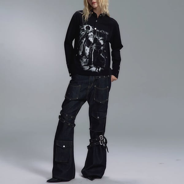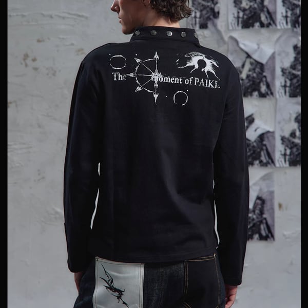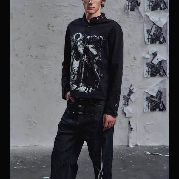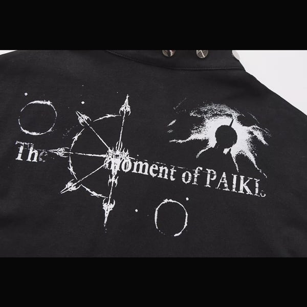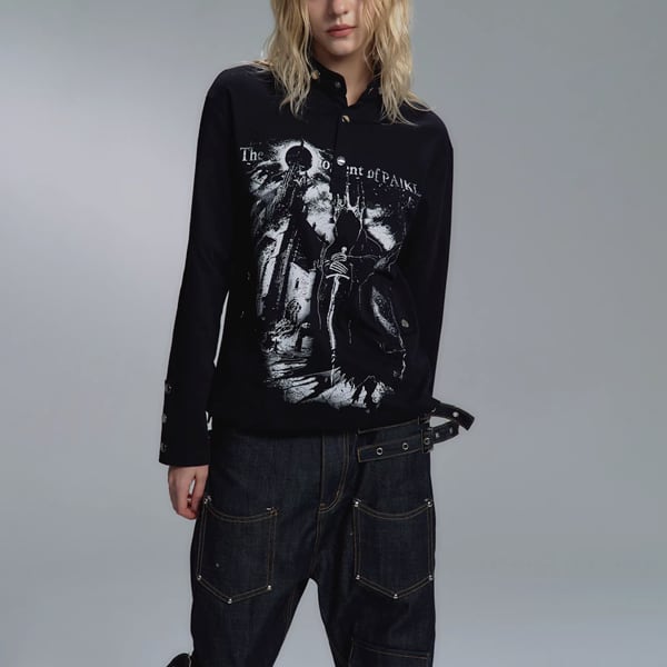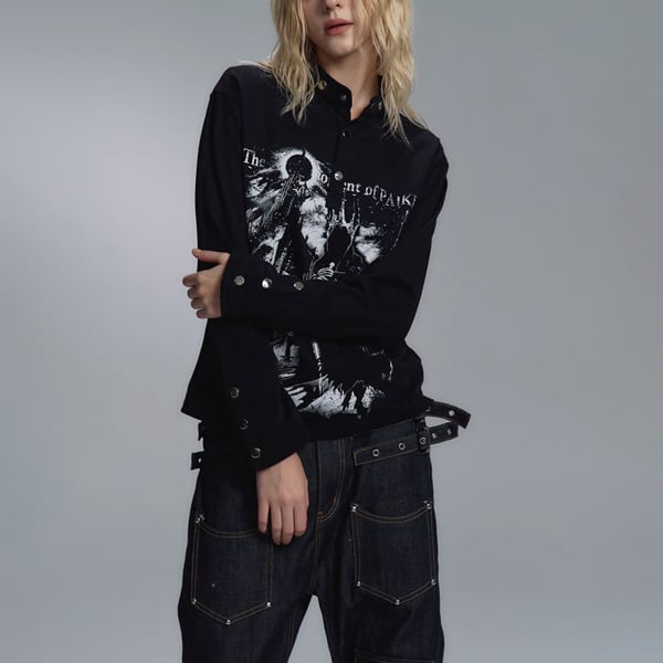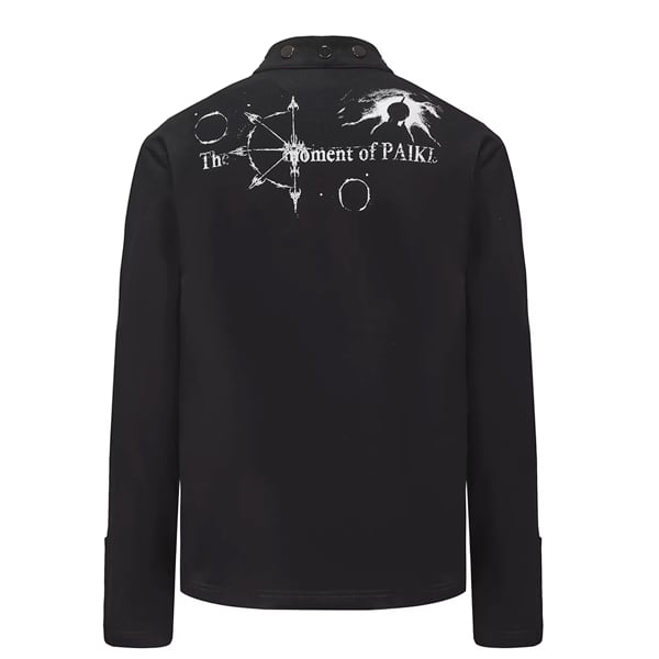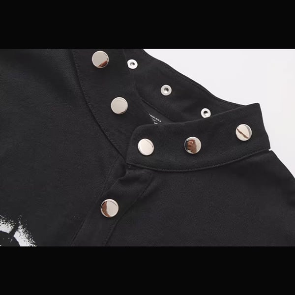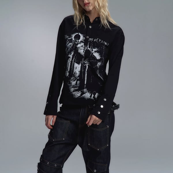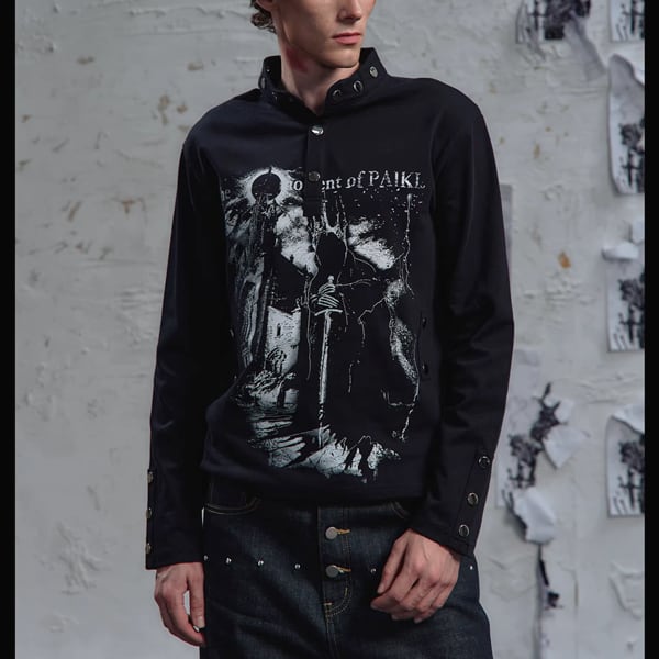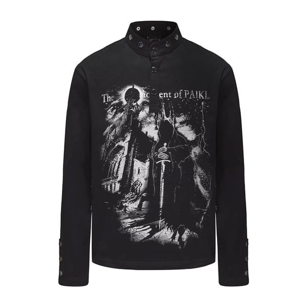 ブラックダークキャッスルナイトプリントスタッズネックトップス(ruf_02826)