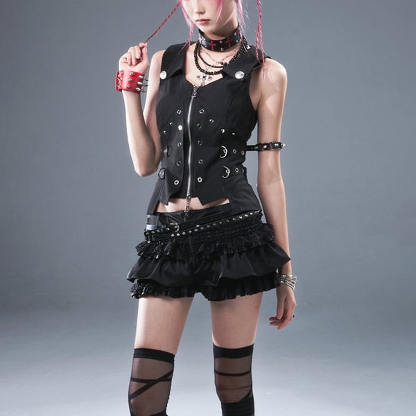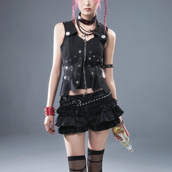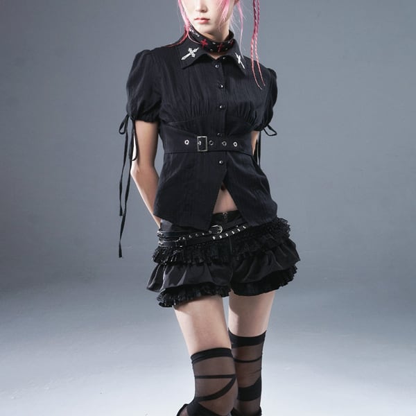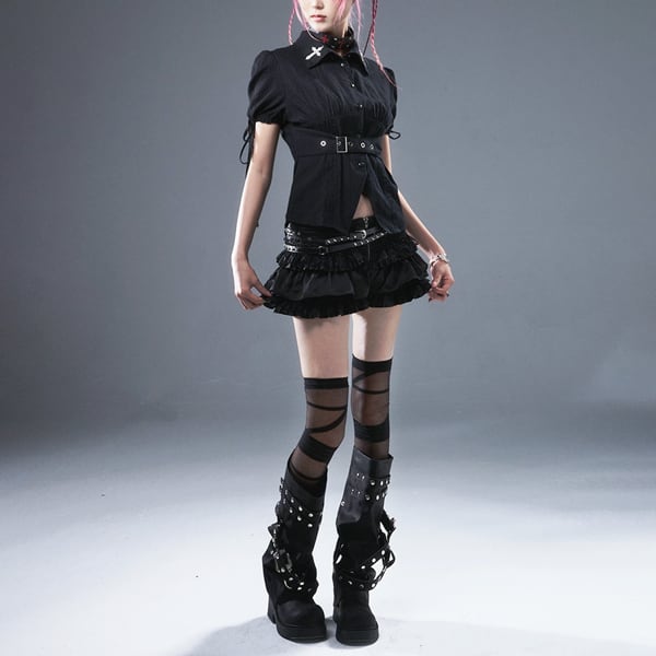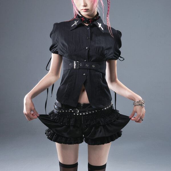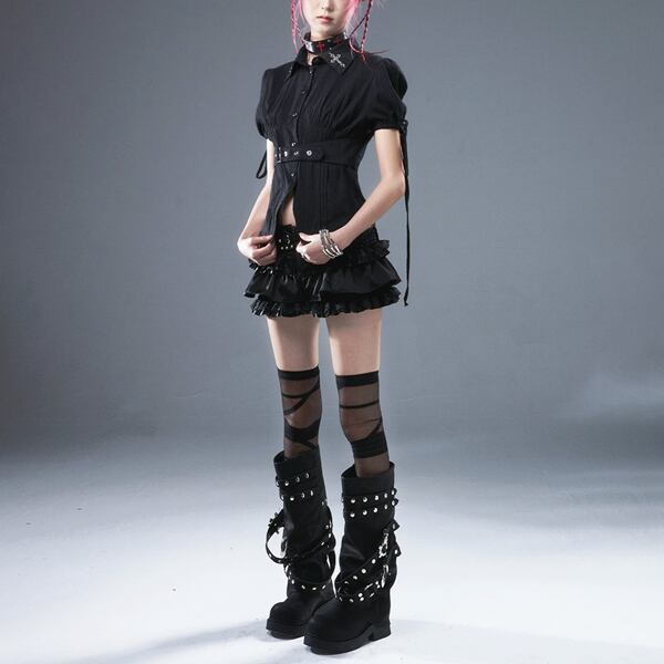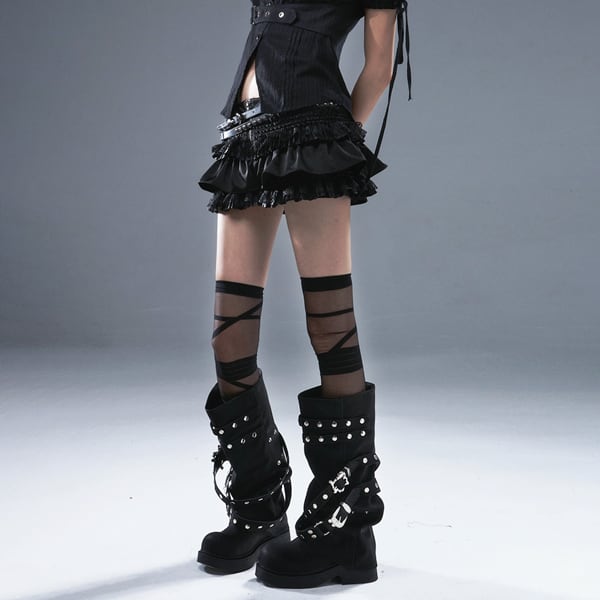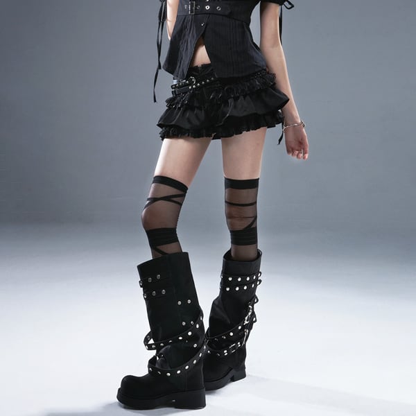 スタッズベルト×フリルレイヤードティアードスカートパンツ(ruf_02860)