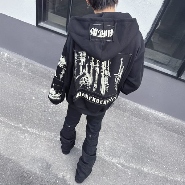カテドラルグラフィックパッチ ゴシックジップパーカー(ruf_02869)