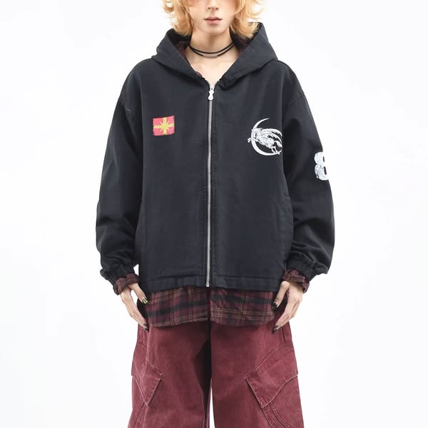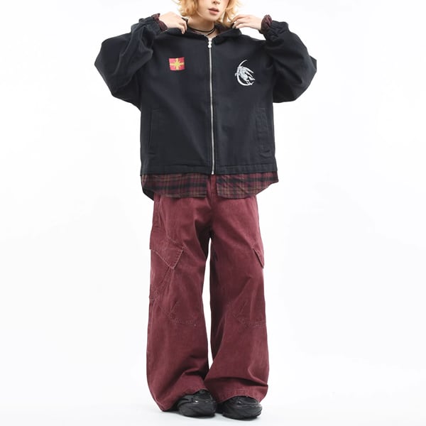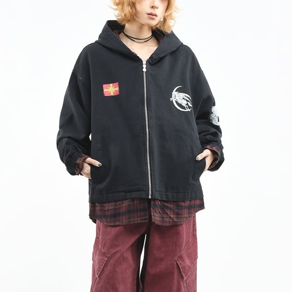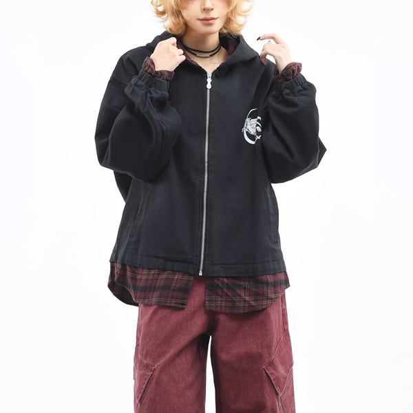 チェックレイヤード ジップフーディージャケット(ruf_02887)
