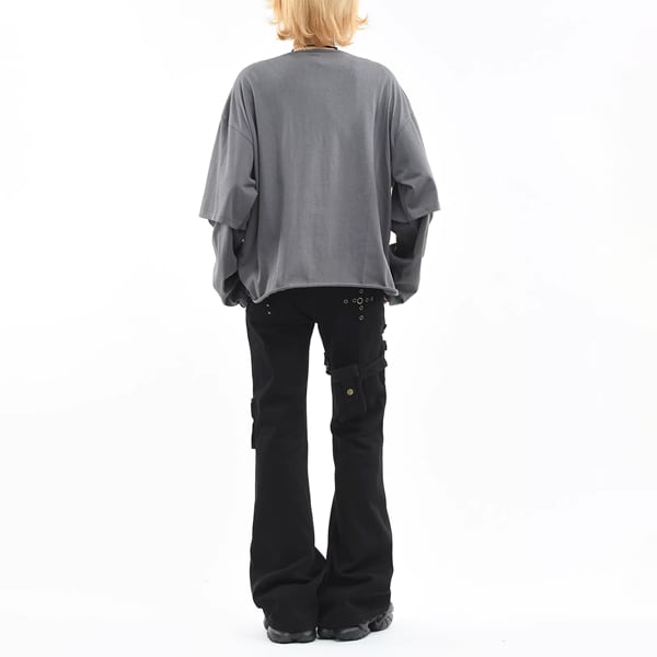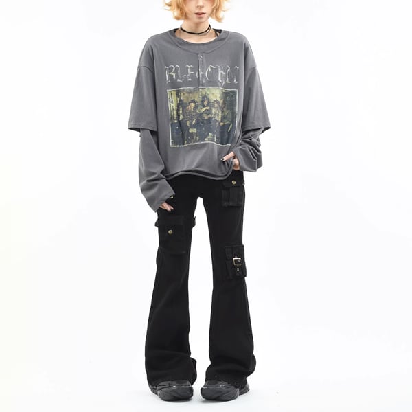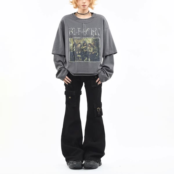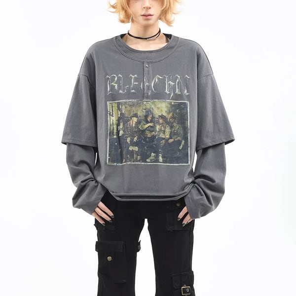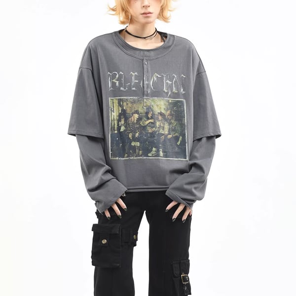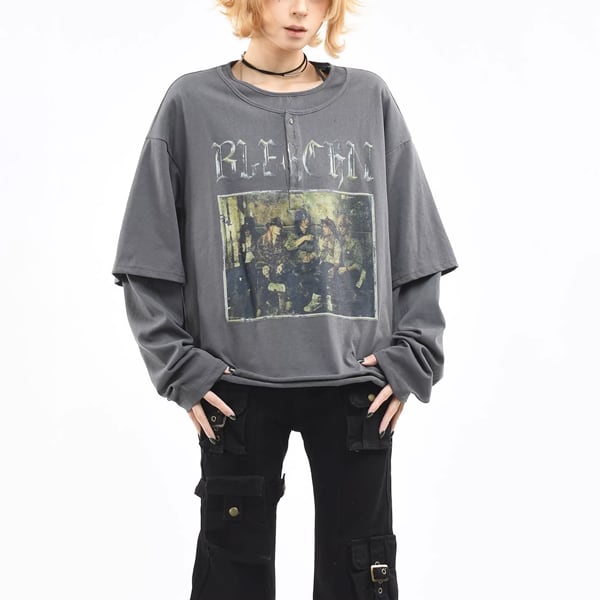 スモークグレー・フォトグラフィックフェイクレイヤードロンT(ruf_02896)