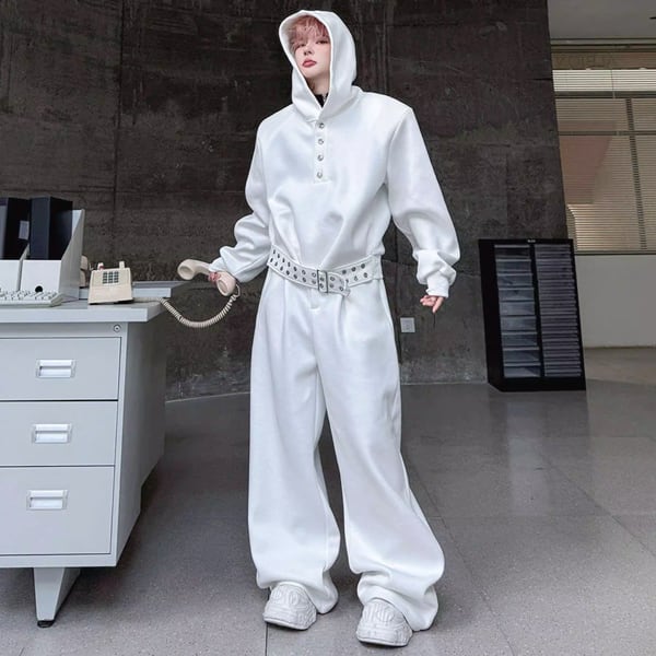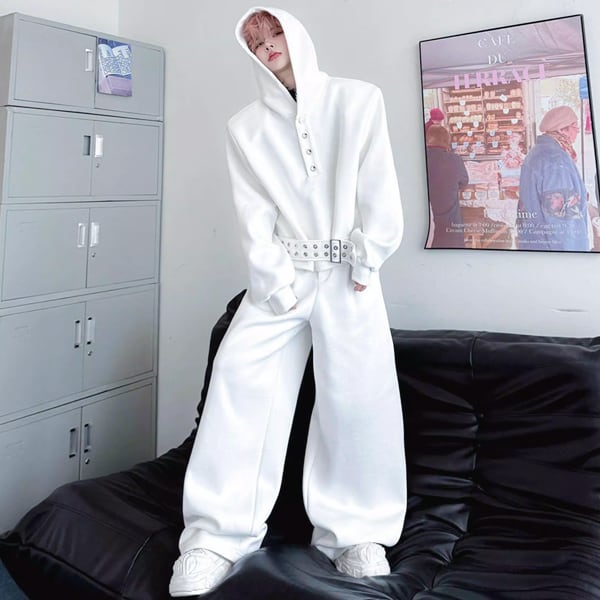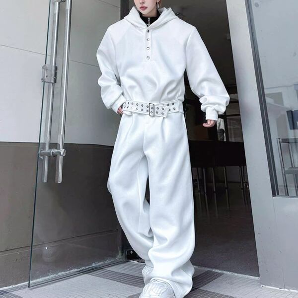 ダークストリート ベルトフーディホワイトセットアップ(ruf_02907)