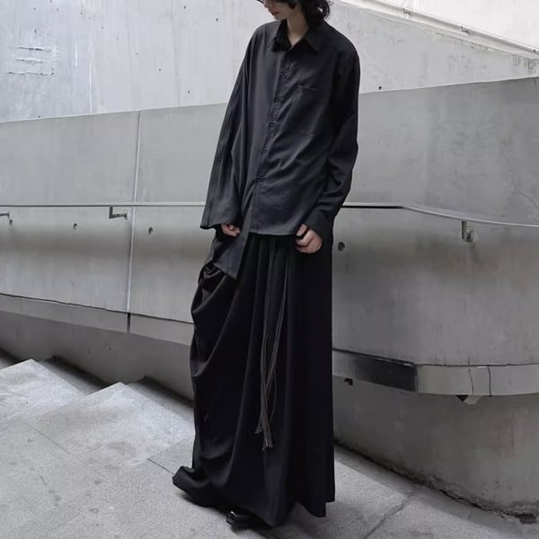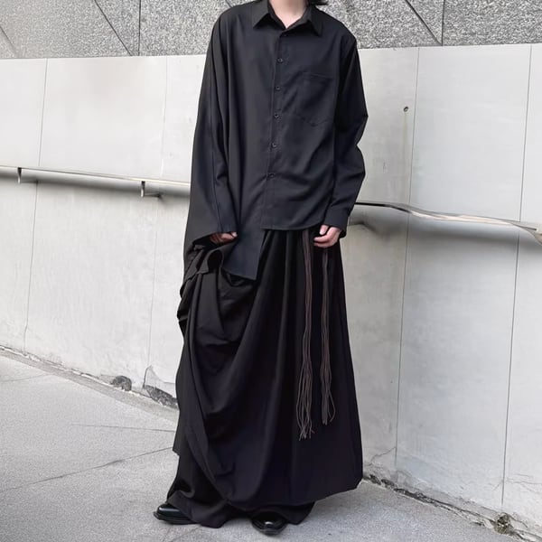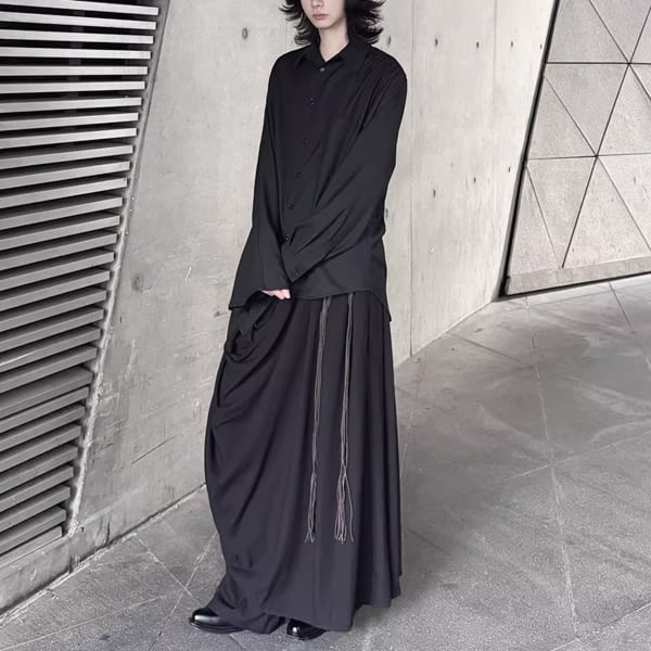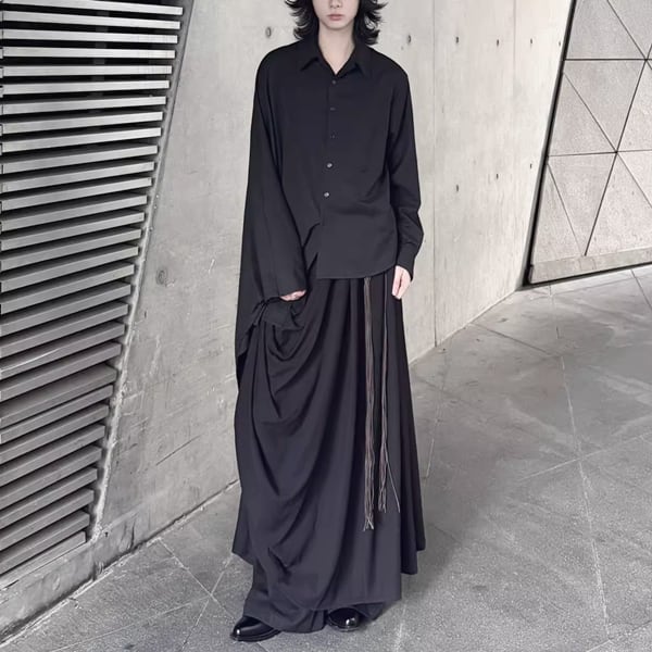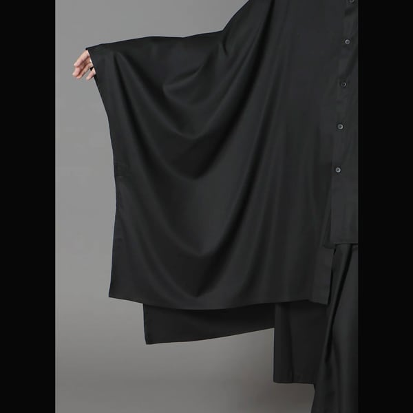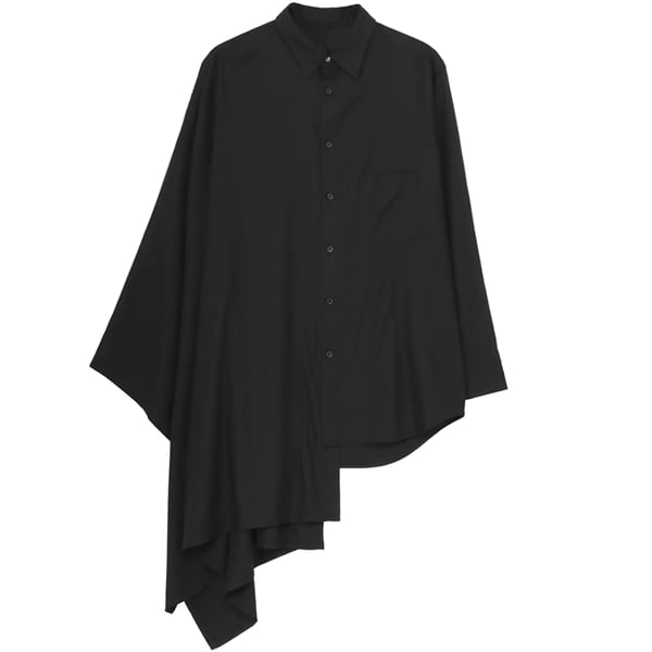 アシンメトリードレープケープブラックシャツ(ruf_02911)