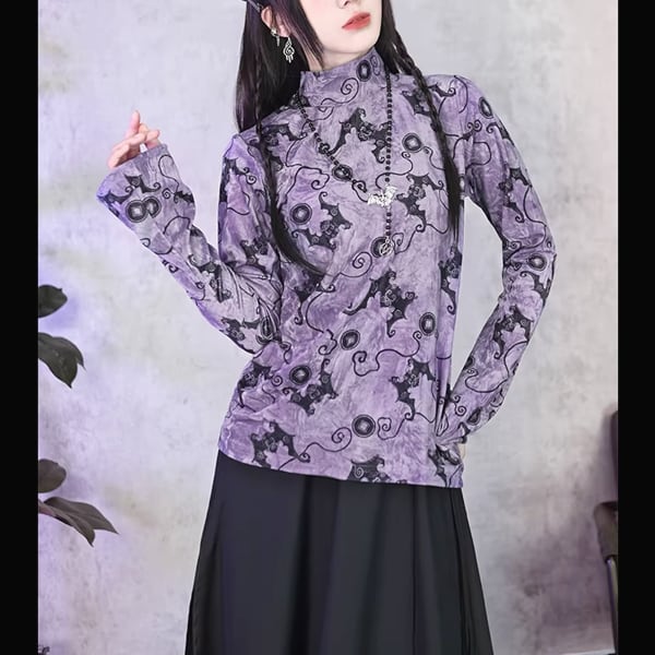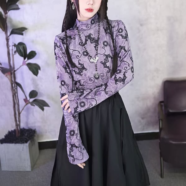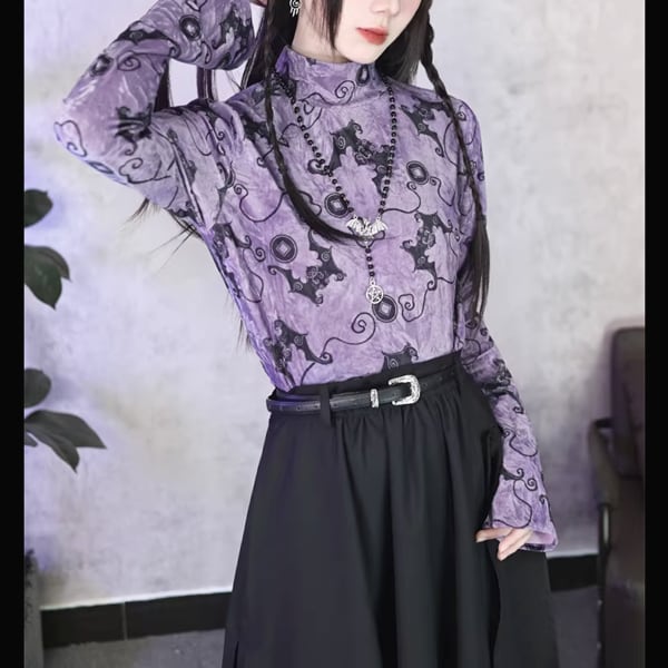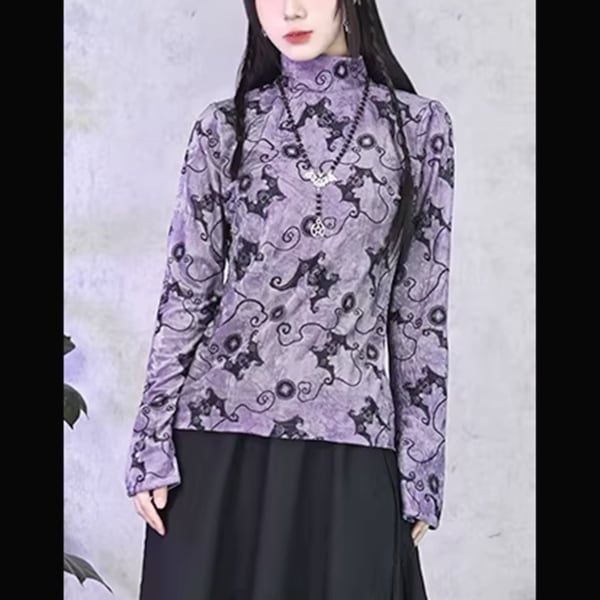 ミスティックバットハイネックストレッチベルベットトップス(ruf_02922)