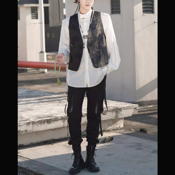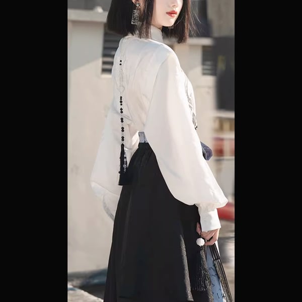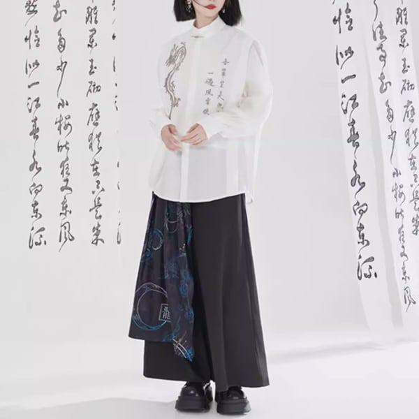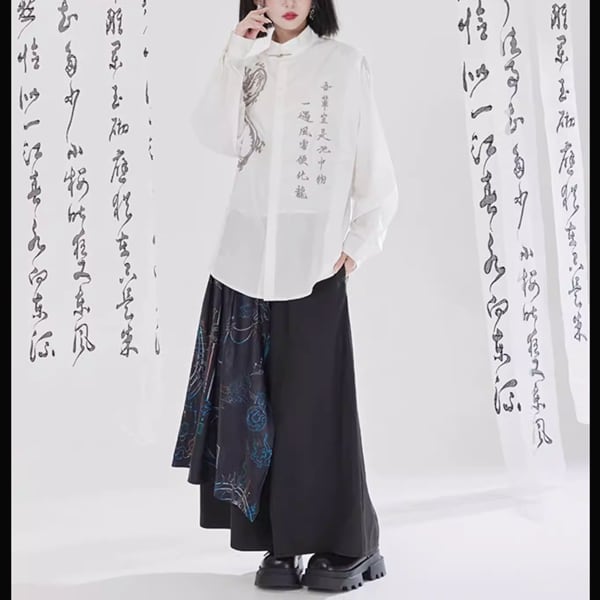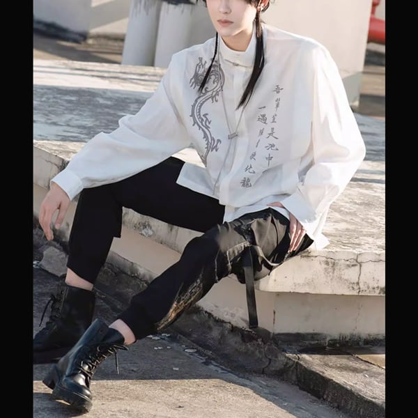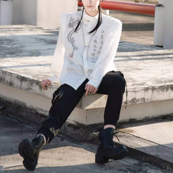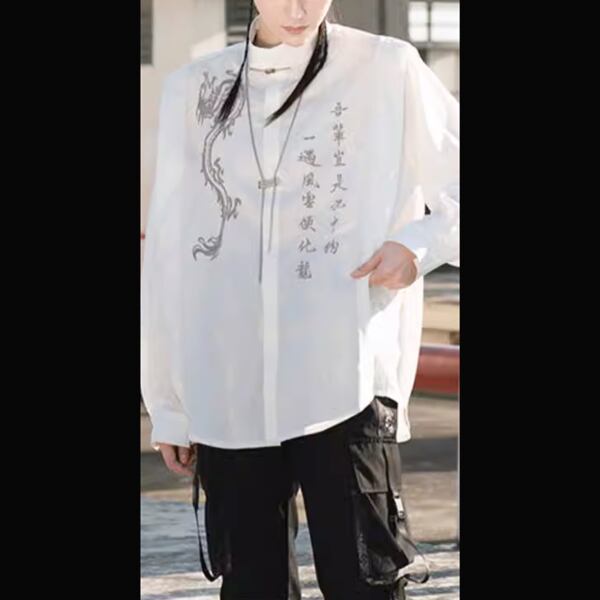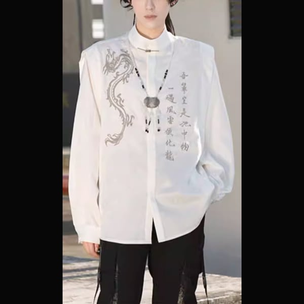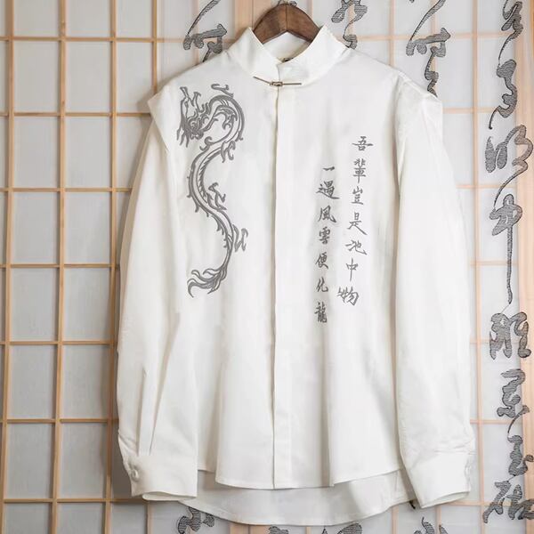 ドラゴン刺繍スタンドカラーホワイトシャツ(ruf_02927)