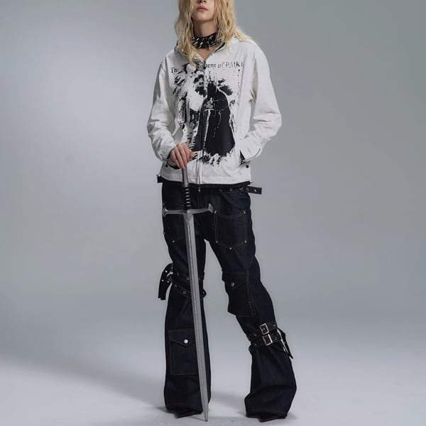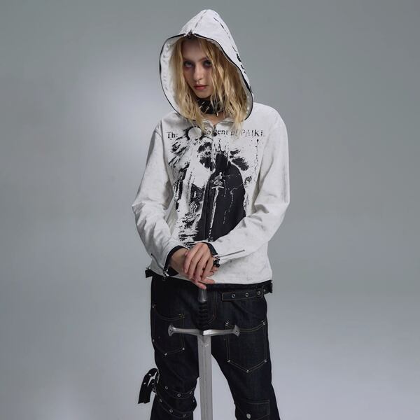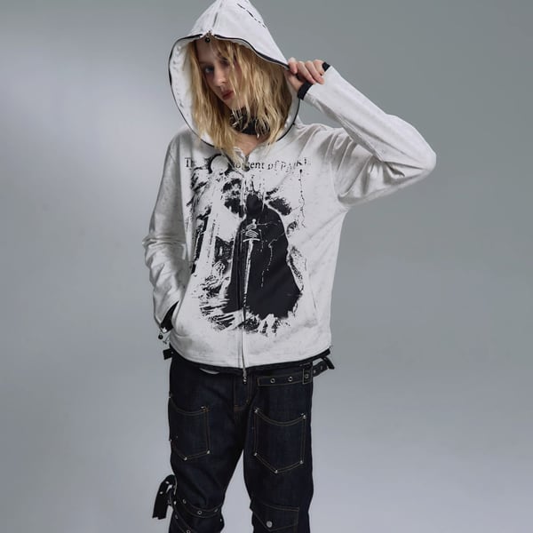ホワイトデモニックアート ジップアップパーカー(ruf_02928)