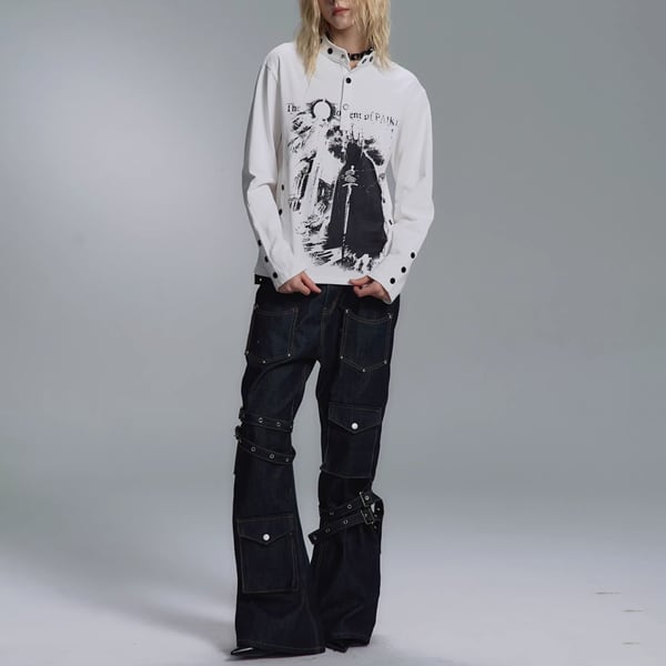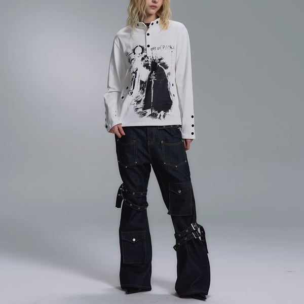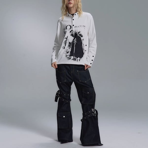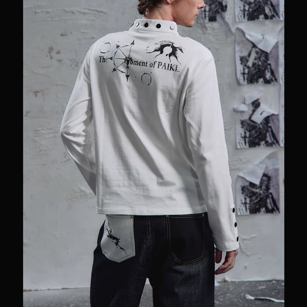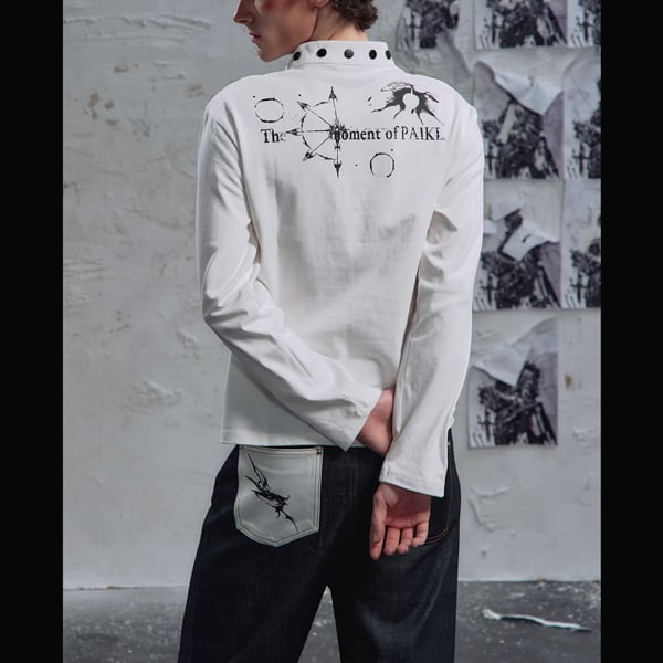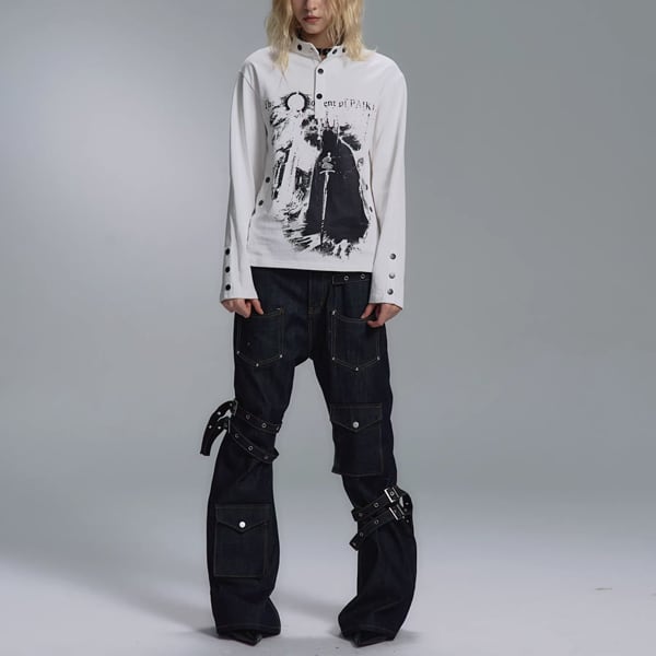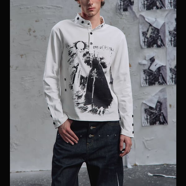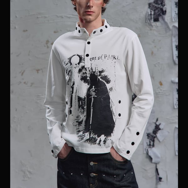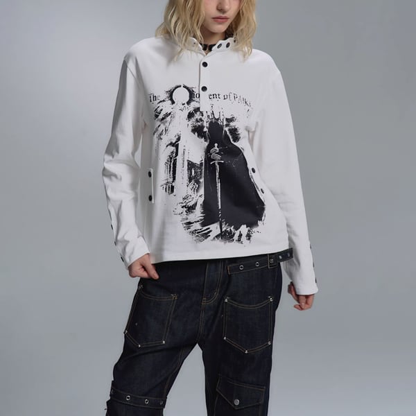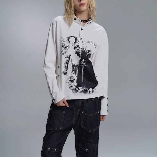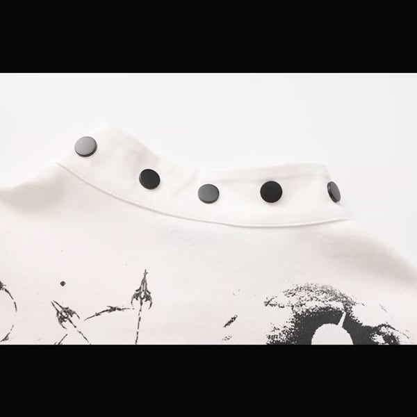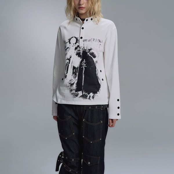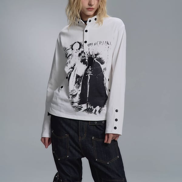 ホワイトダークキャッスルナイトプリントスタッズネックトップス(ruf_02929)