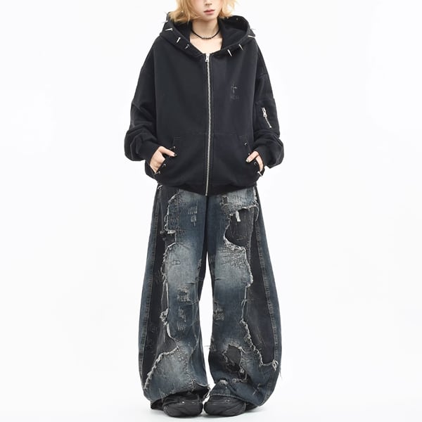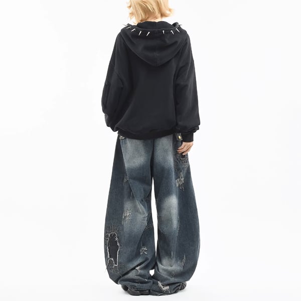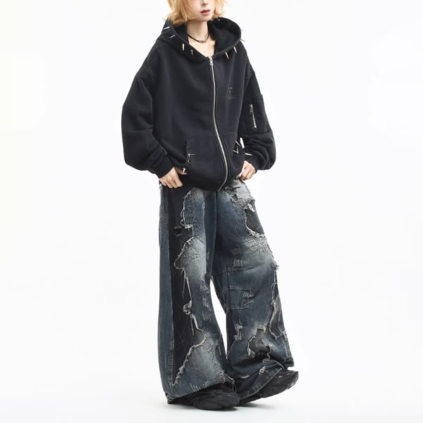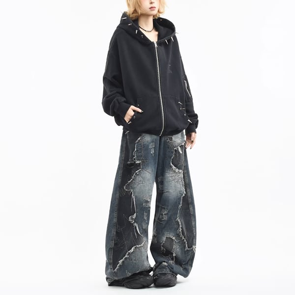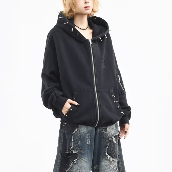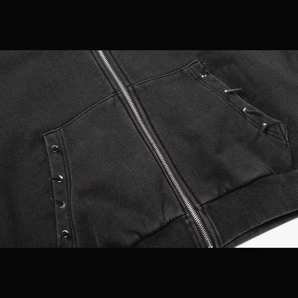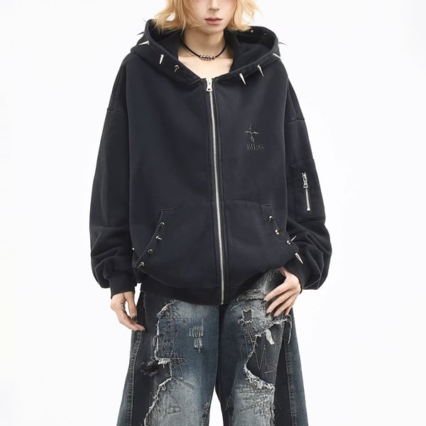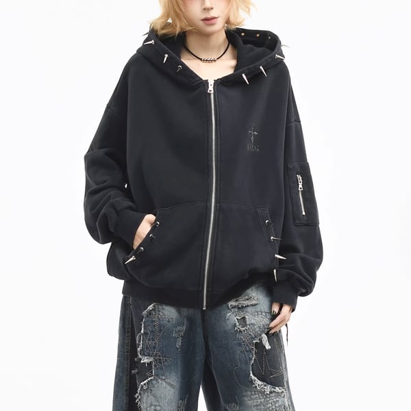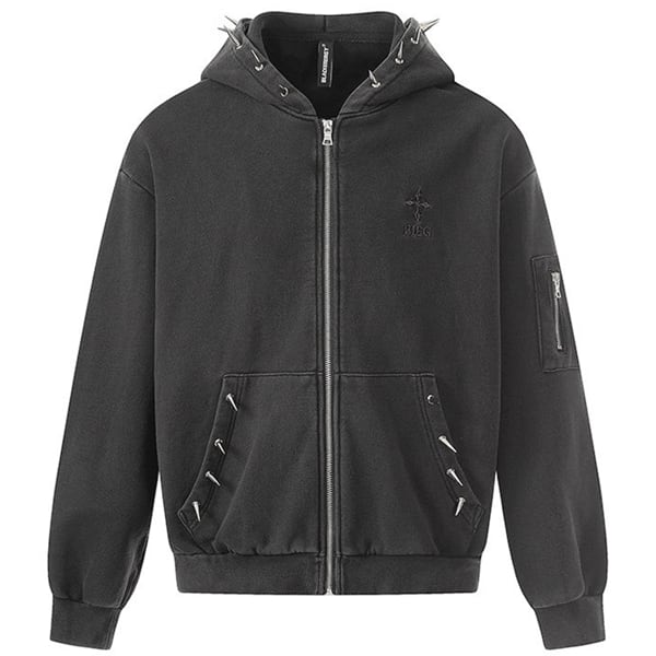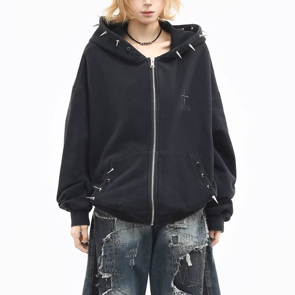 ブラックスパイクフードジップパーカー (ruf_02931)