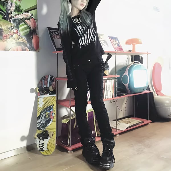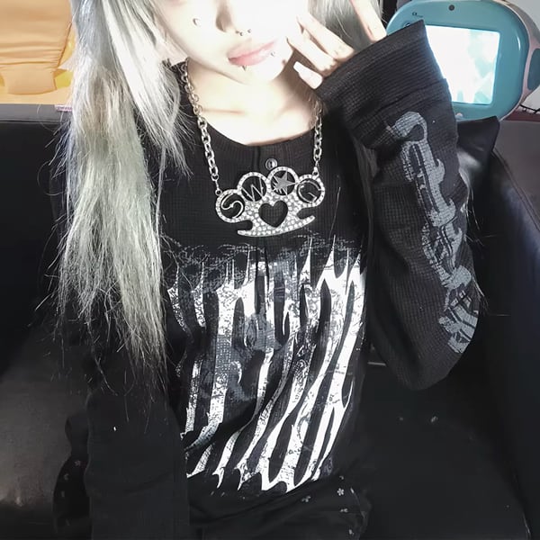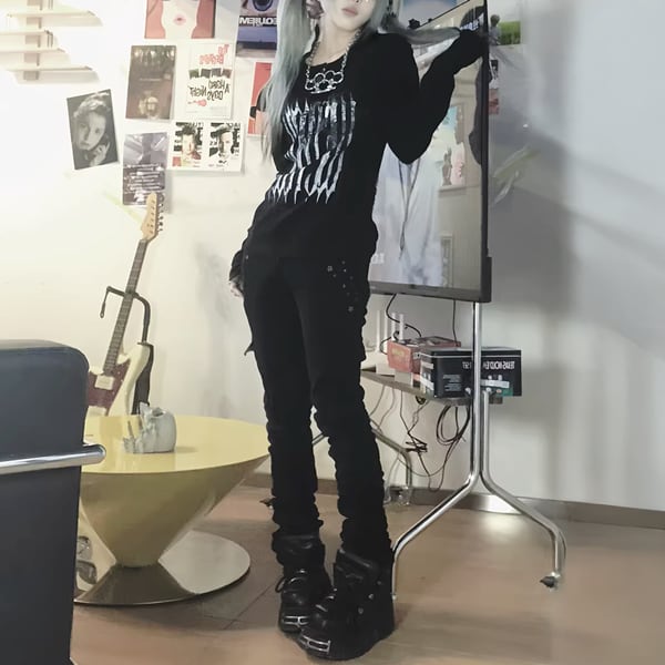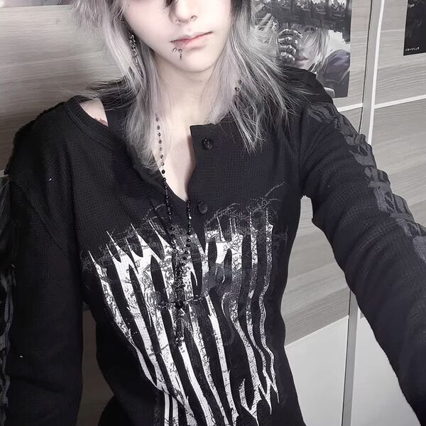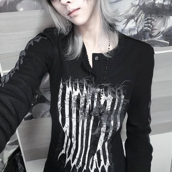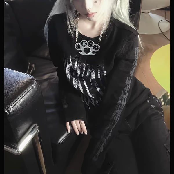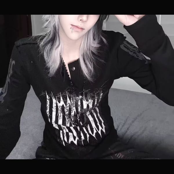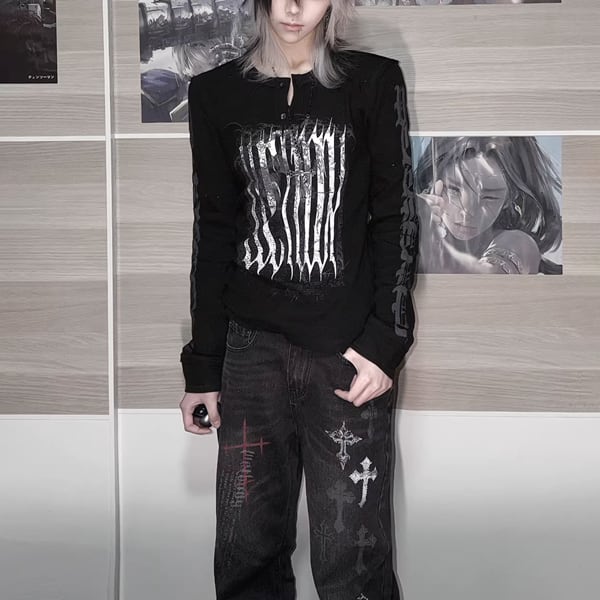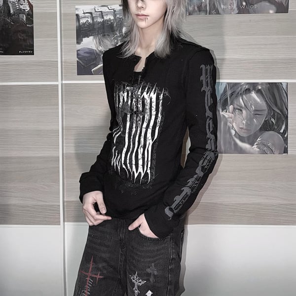 ブラックダークグリッド・スリムロングスリーブT(ruf_02947)