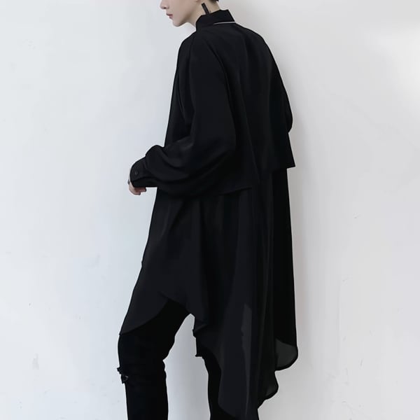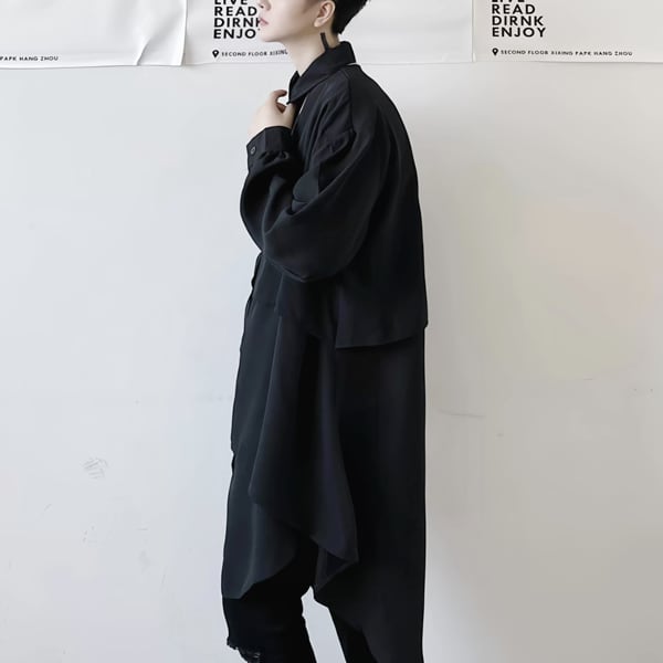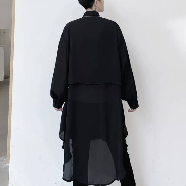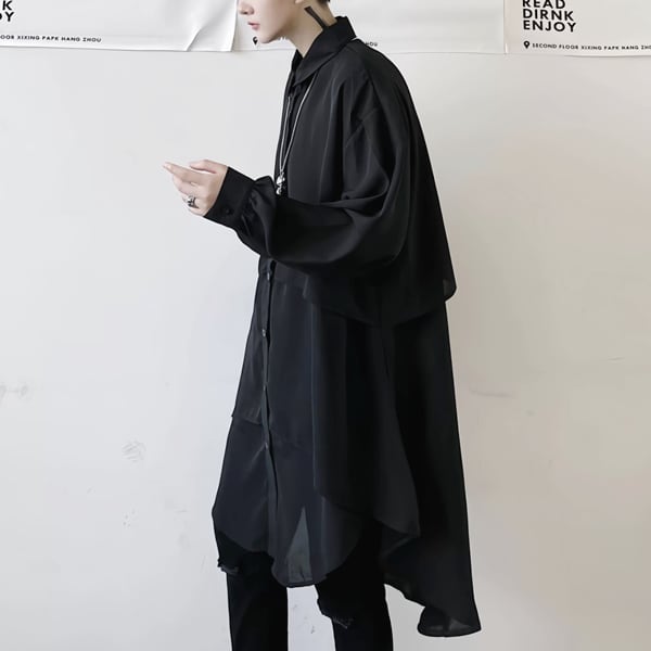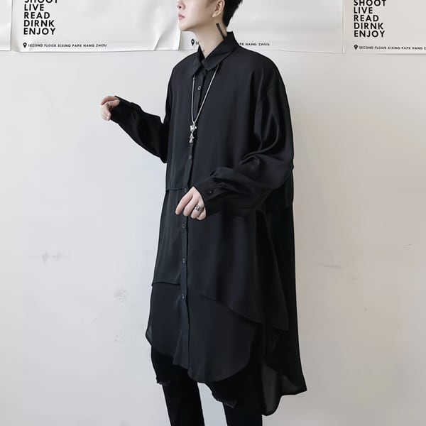 ロングシルエットレイヤードブラックシャツ(ruf_02950)