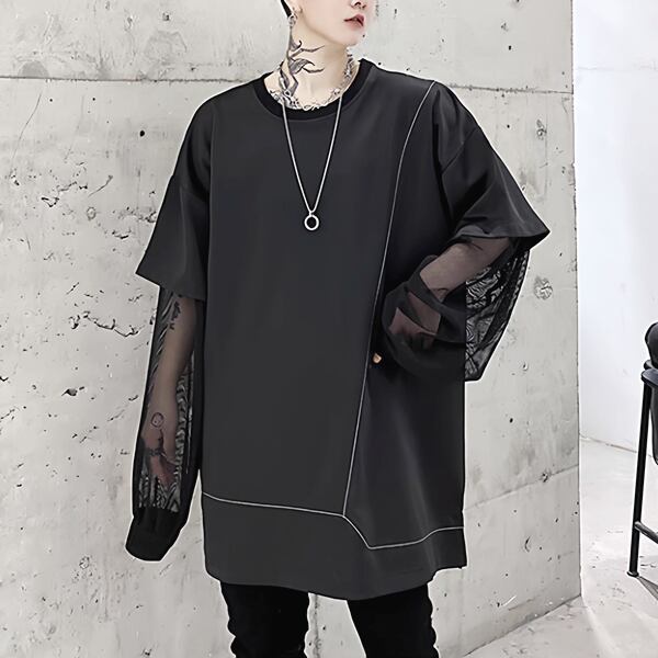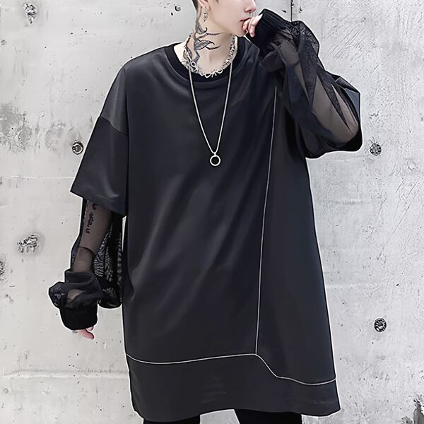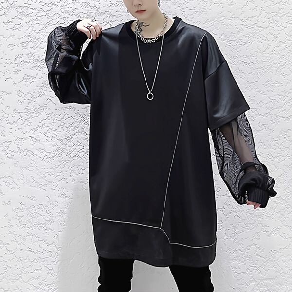 メッシュスリーブ レイヤードオーバーTシャツ(ruf_02969)
