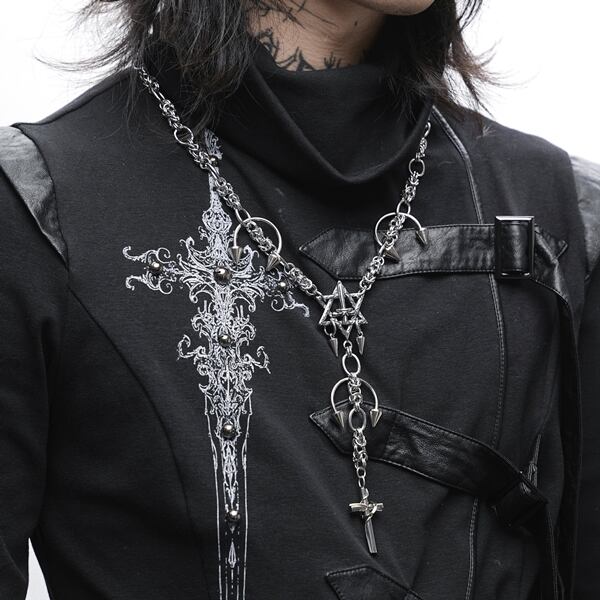 ゴシッククロス ドロップチェーンネックレス(ruf_02979)