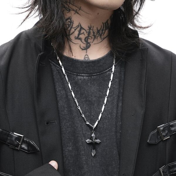 ミニマルダーククロス チェーンネックレス(ruf_02981)