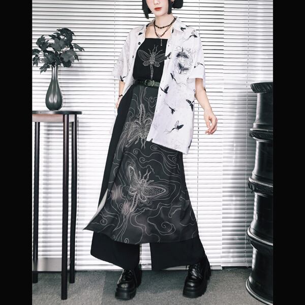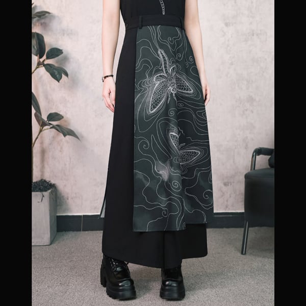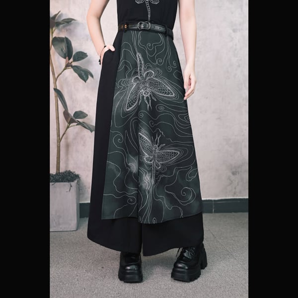 ダークモスバタフライ ダブルレイヤー袴ワイドパンツ(ruf_02990)