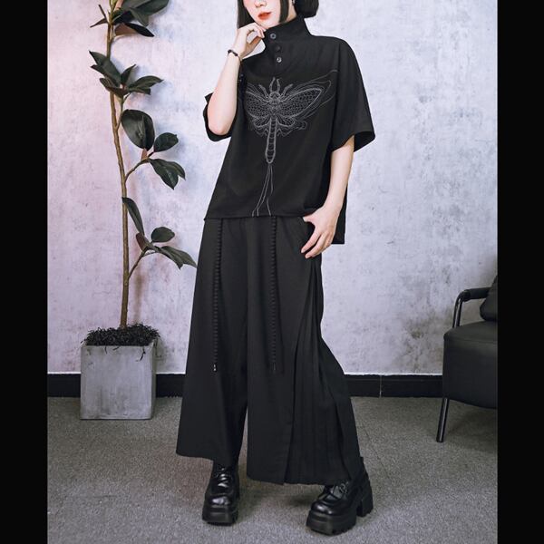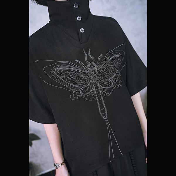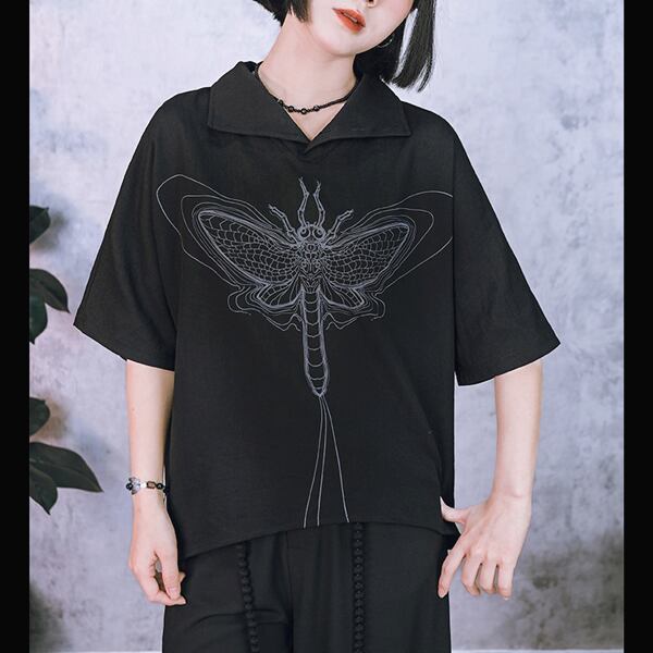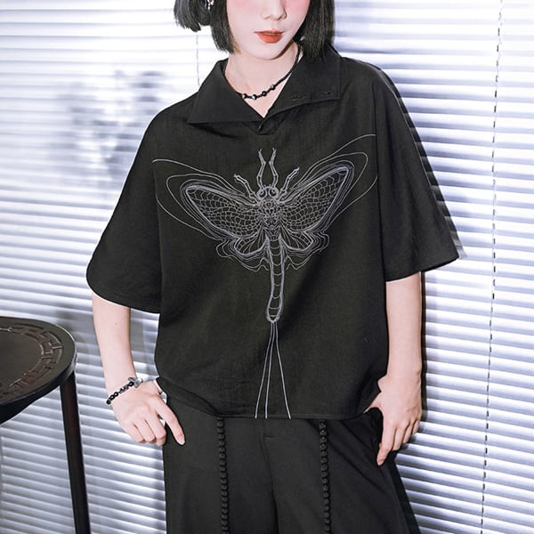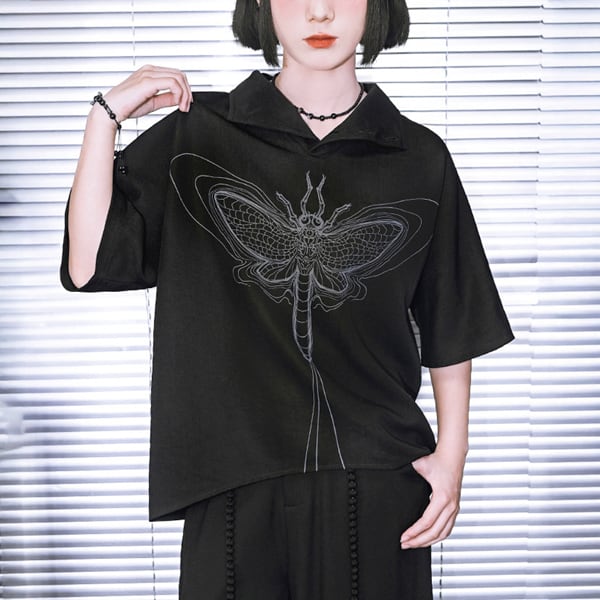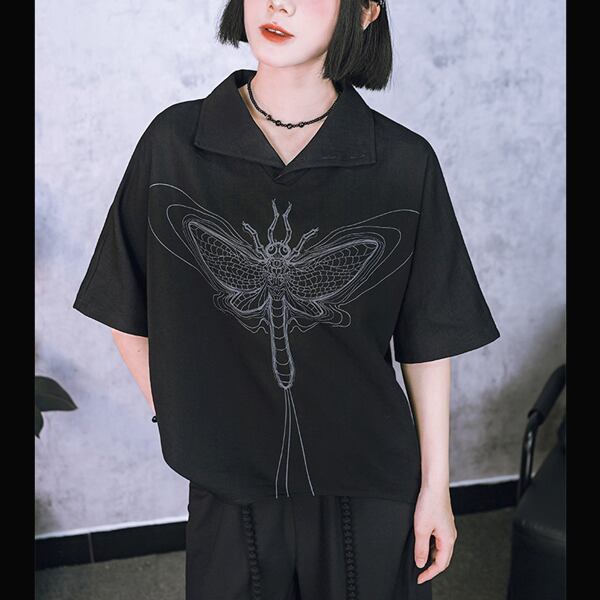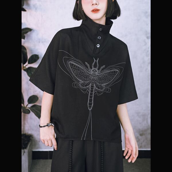 ブラックフライグラフィック2WAYハイネックシャツトップス(ruf_02995)