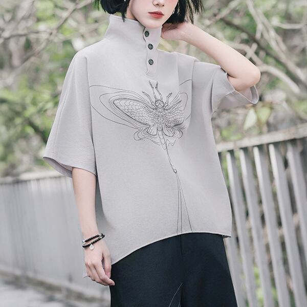 グレーフライグラフィック2WAYハイネックシャツトップス(ruf_03000)
