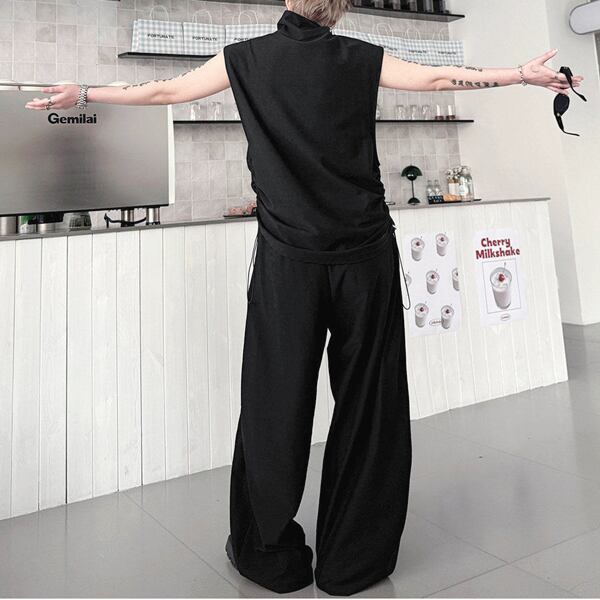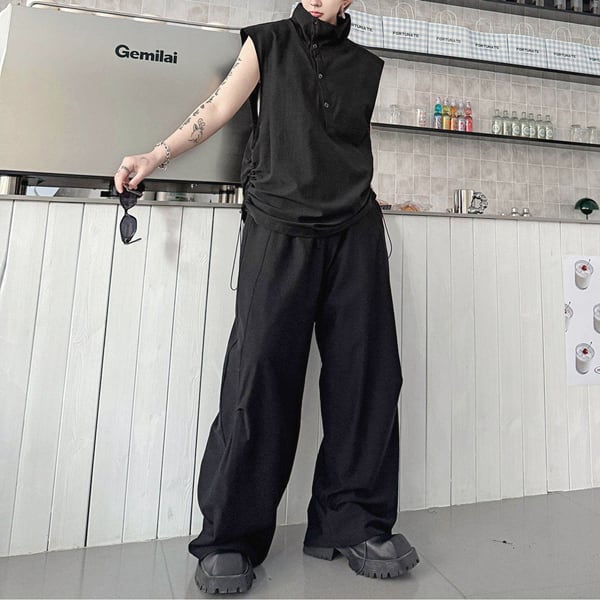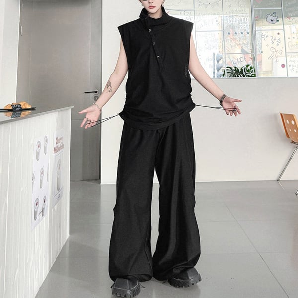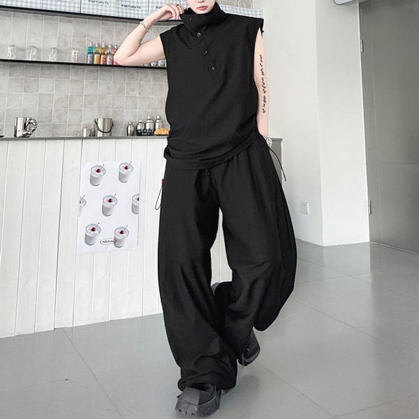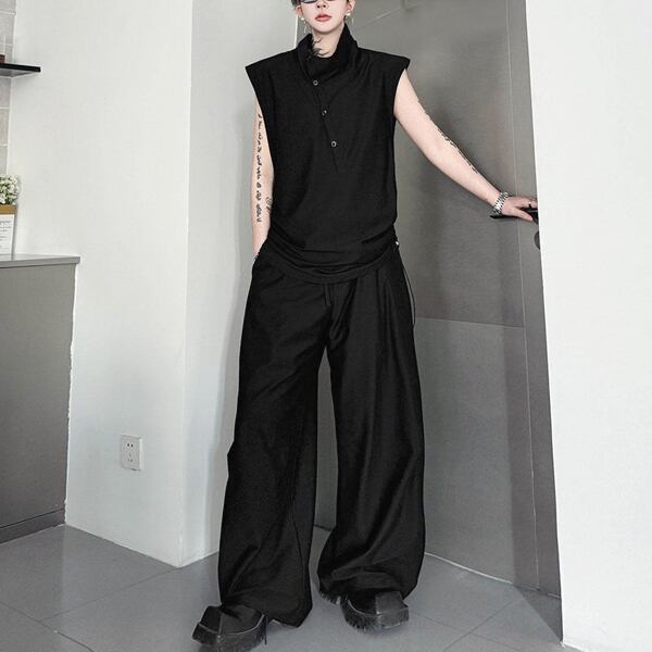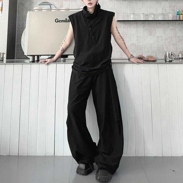スタンドネック ノースリーブ×ワイドパンツ セットアップ(ruf_03017)