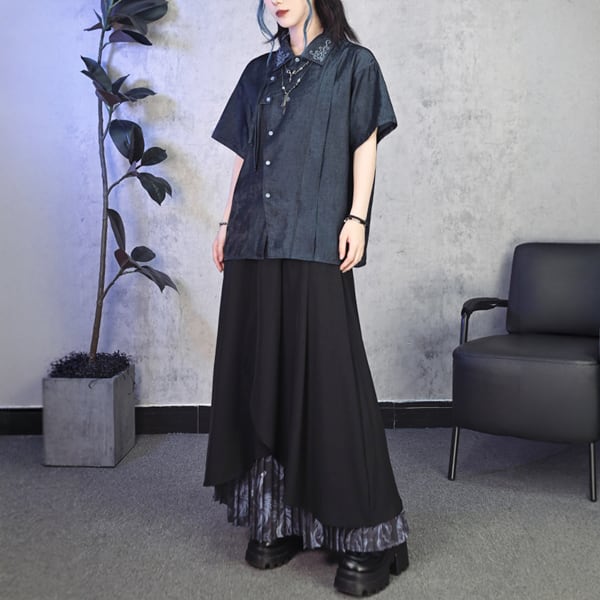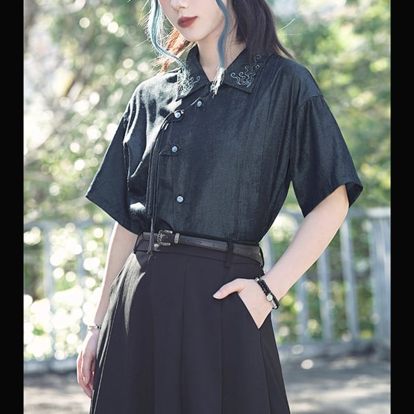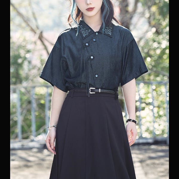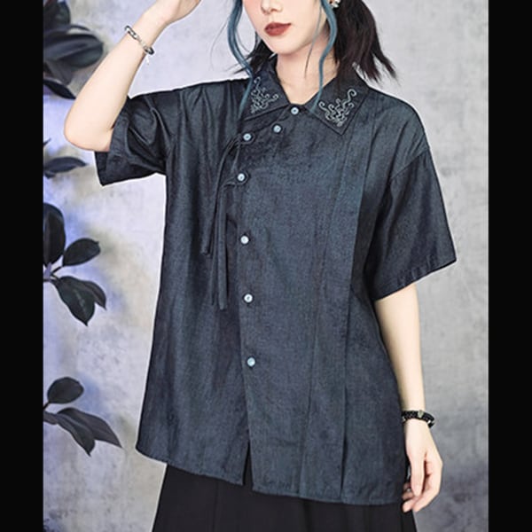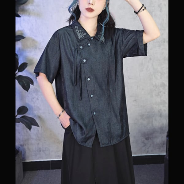 刺繍デザイン 斜襟タッセルシャツ(ruf_03025)