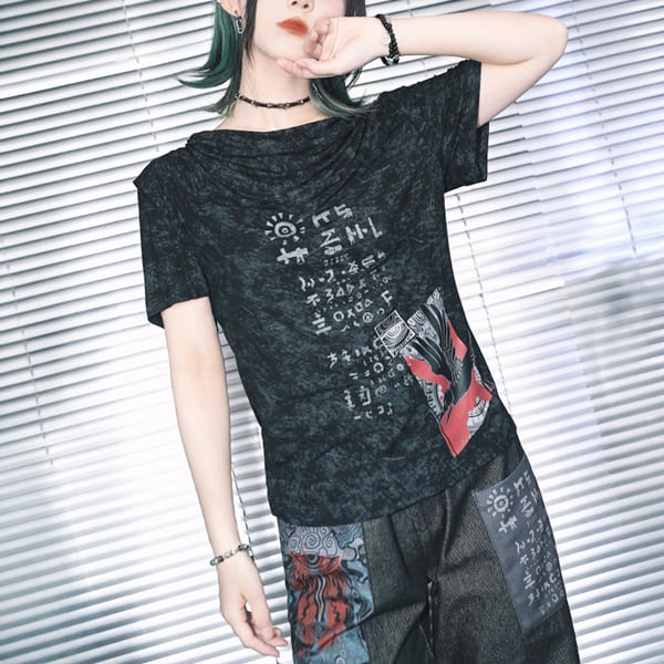 ドレープネックフーディーグラフィックTシャツ(ruf_03028)
