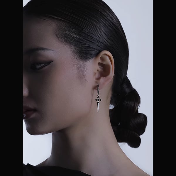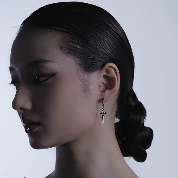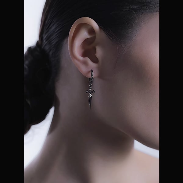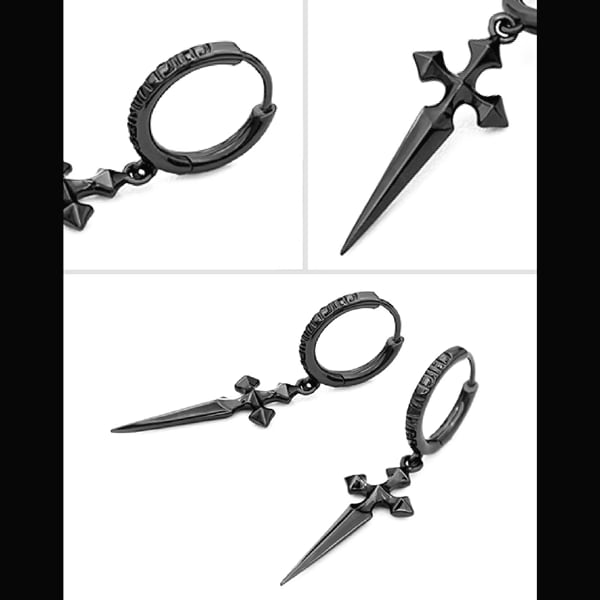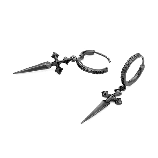 ブラッククロスダガー フープピアス(ruf_03034)