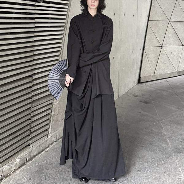 アシンメトリードレープレイヤード スカートワイドパンツ(ruf_03042)