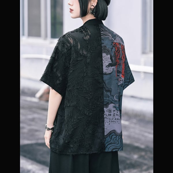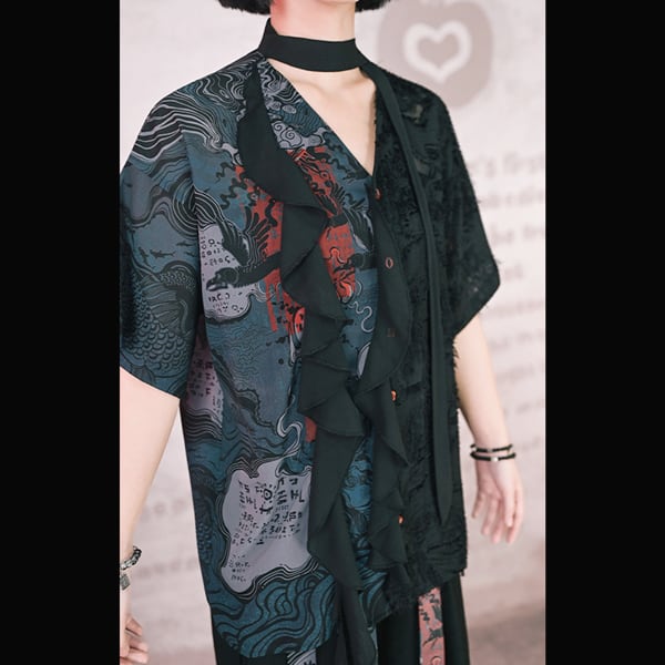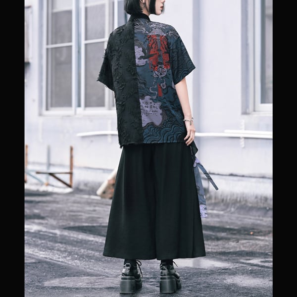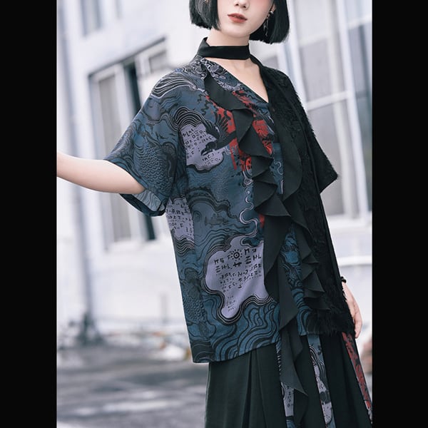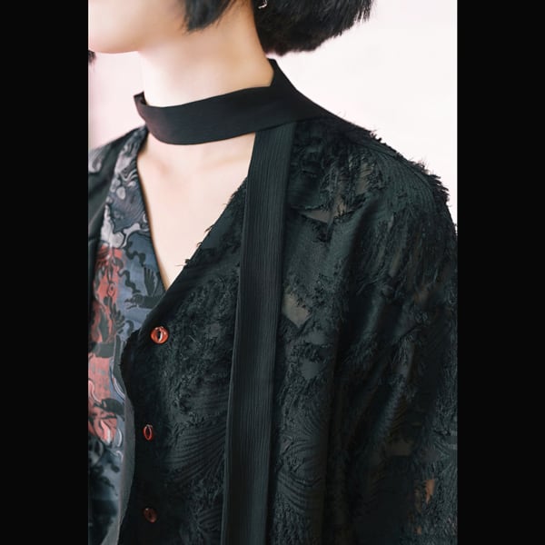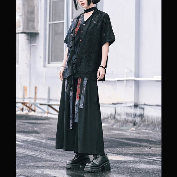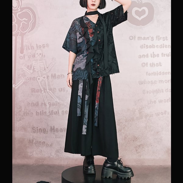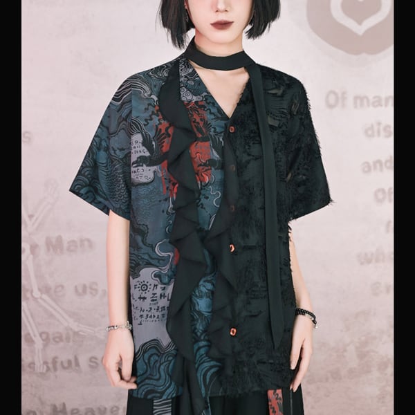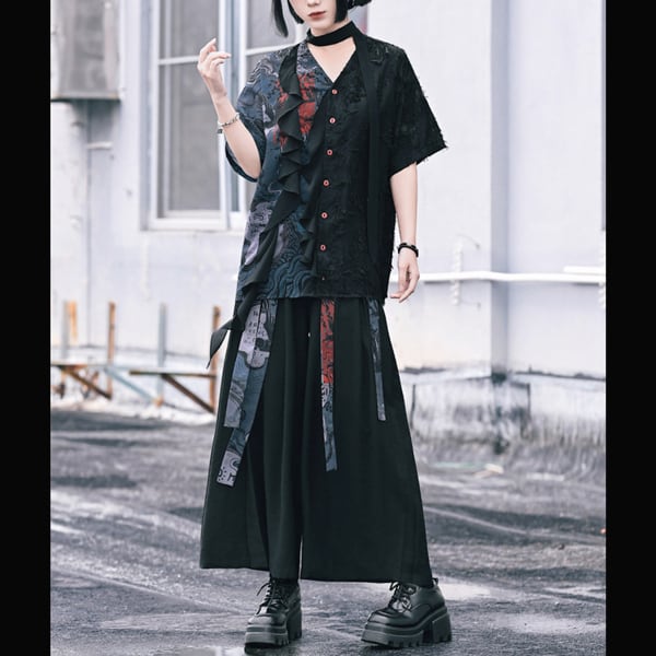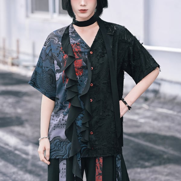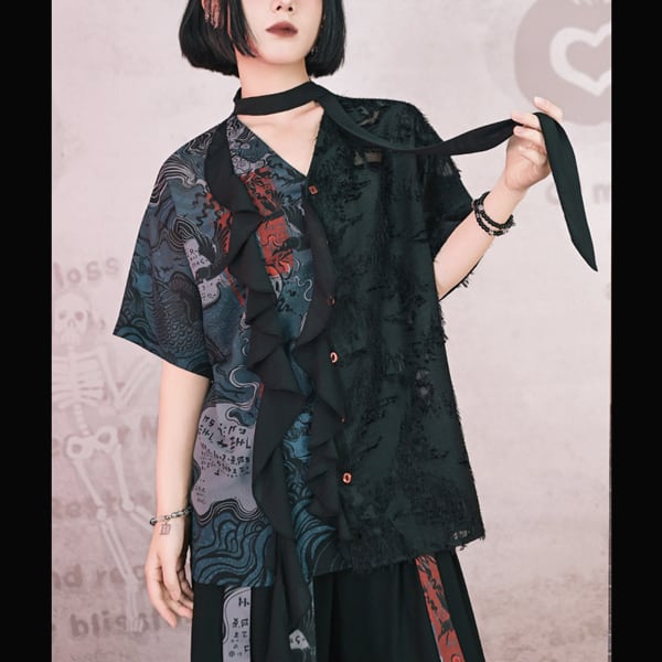 アシンメトリーチョーカーストラップ フリルシャツ(ruf_03051)