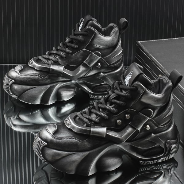 ▼汚し加工のないタイプ(リベットデザイントハイカットボリュームソールブラックシューズ(ruf_01448))は以下からご覧ください▼