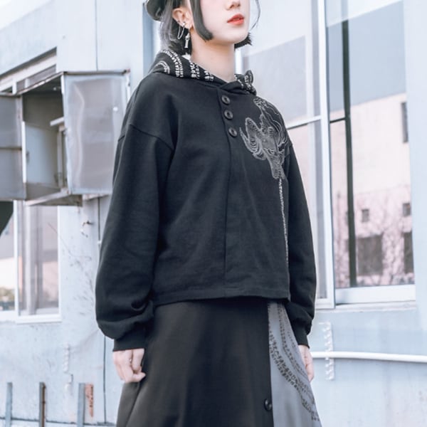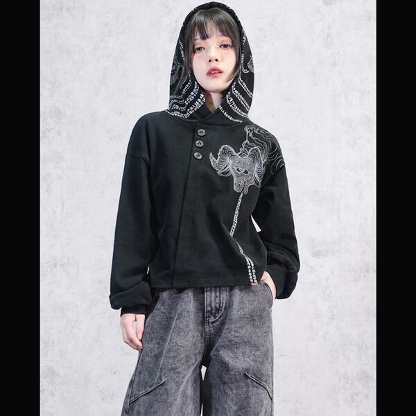 フーディモンスターロゴプリントアシメボタンプルオーバー(ruf_02022)